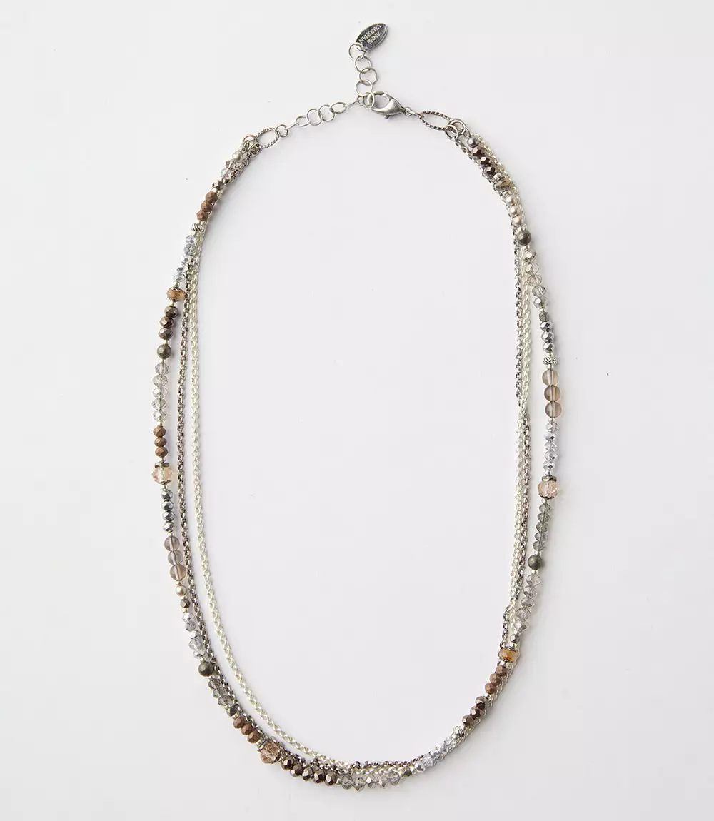 This elegant necklace is constructed with earth-toned gemstone crystals and Czech glass. Like everything made with natural elements, each is one-of-a-kind.