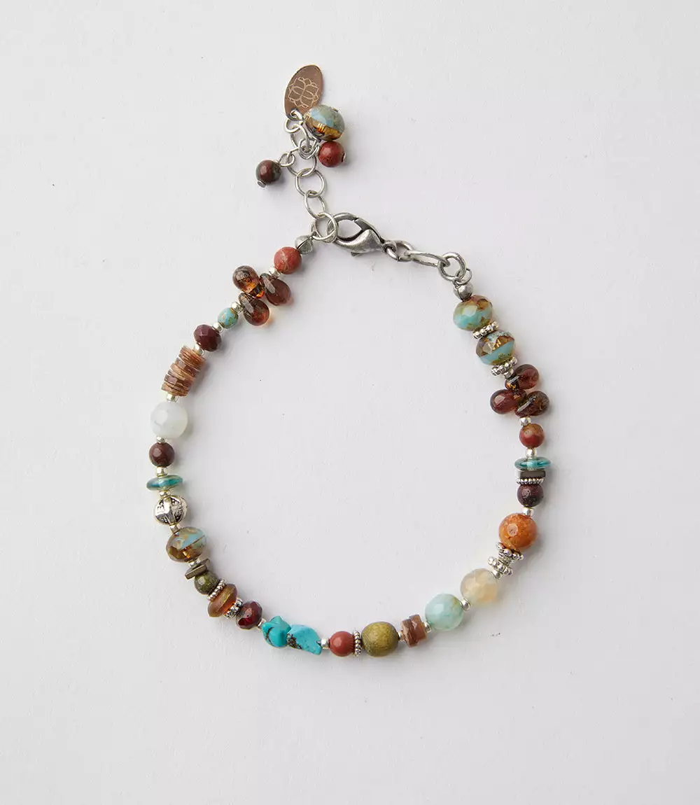 This stunning bracelet is made of rich turquoise and jasper stones with hints of earthy tones. Each is made by hand by skilled jewelry artists in Virginia, ensuring that every piece is completely one-of-a-kind.
