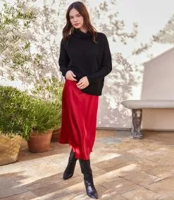 Cut from luxurious vintage heavy satin, this figure-flattering skirt is cut on the bias for a stunning drape. This versatile skirt can easily transition you through the seasons with ease. It features an elastic waistband for comfortability.