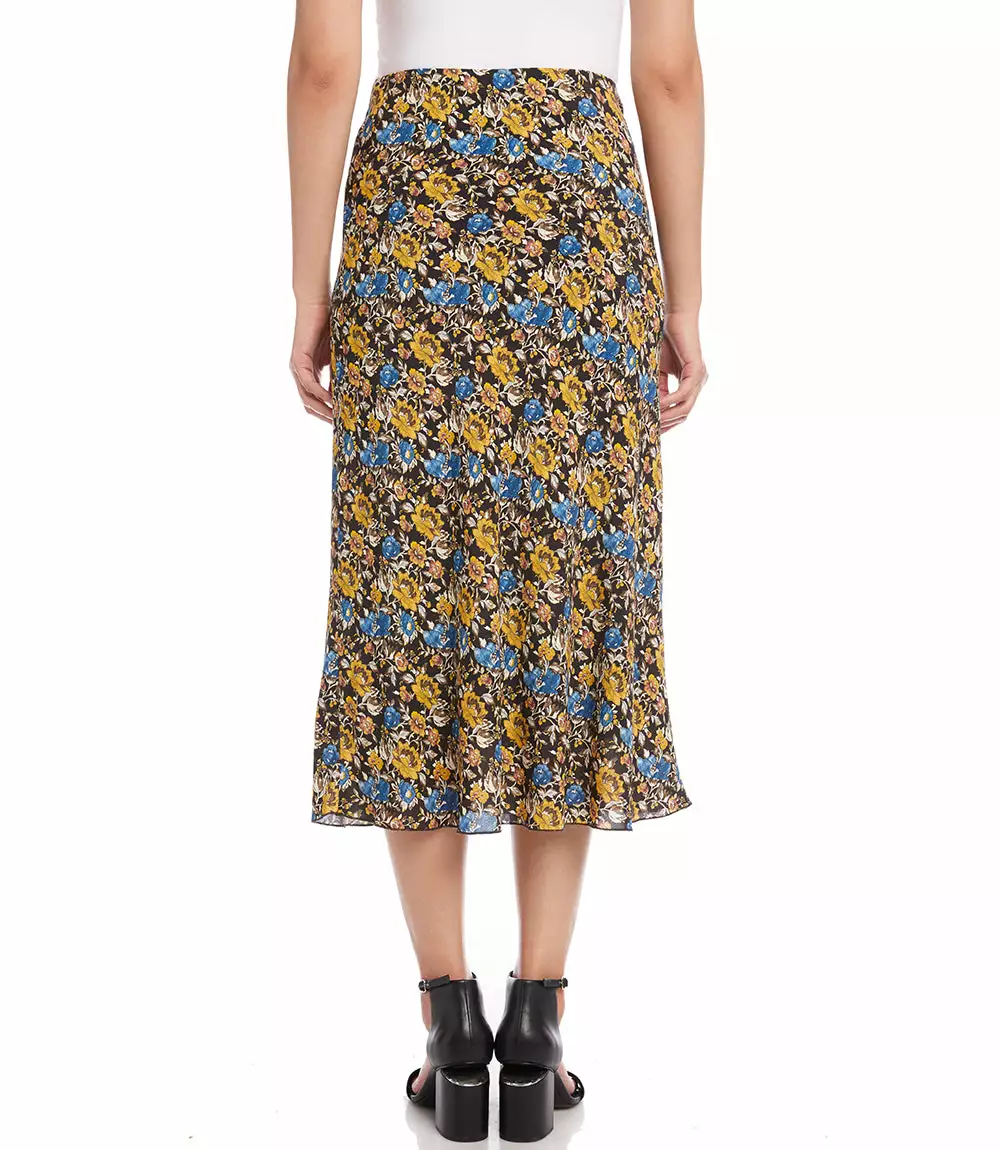 Add a bohemian focus to your wardrobe with this floral print midi skirt. It features an easy pull-on silhouette that flows away from the body in streamlined sophistication.