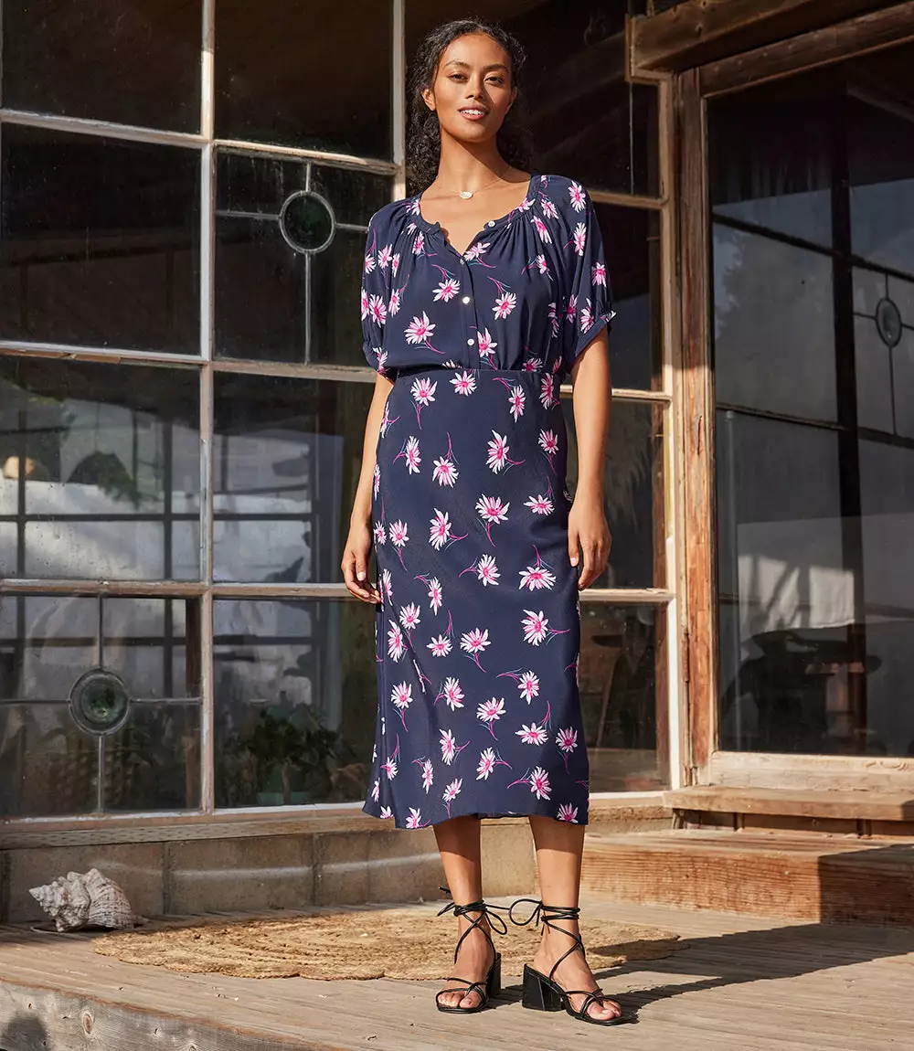 Complete your outfit with this form-fitting midi length skirt.