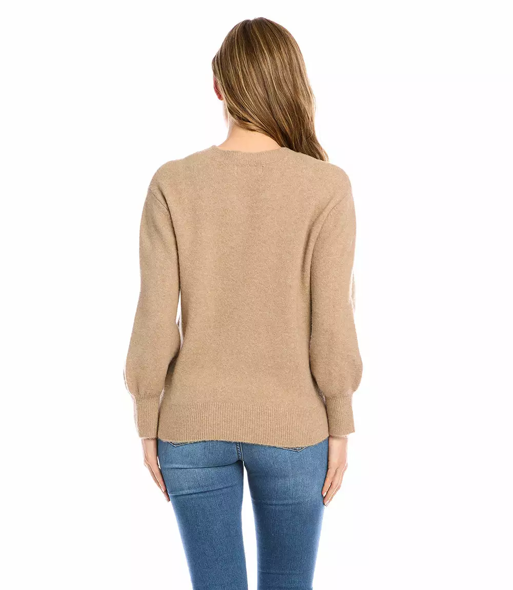 Crafted from super soft plush knit, this essential sweater is detailed with statement-making puff sleeves. This sweater is a layering essential for the cooler temperatures ahead.