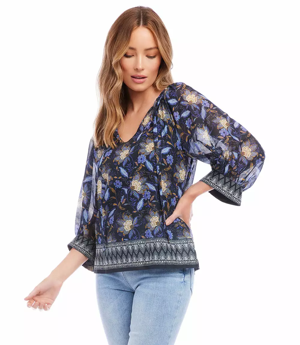 A charming paisley print defines this cotton top finished with billowy blouson sleeves. This top is versatile enough to transition from the office to dinner.