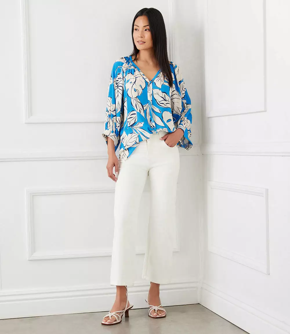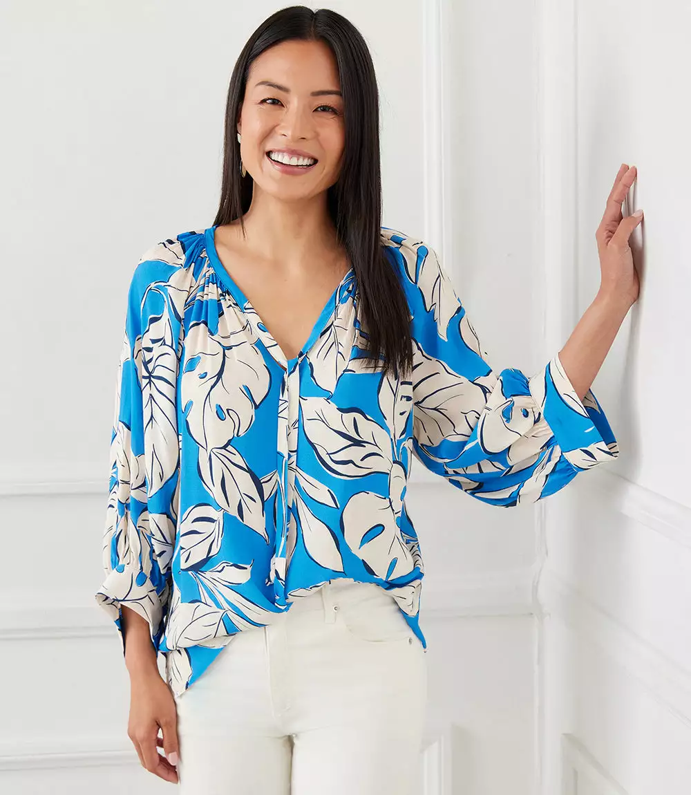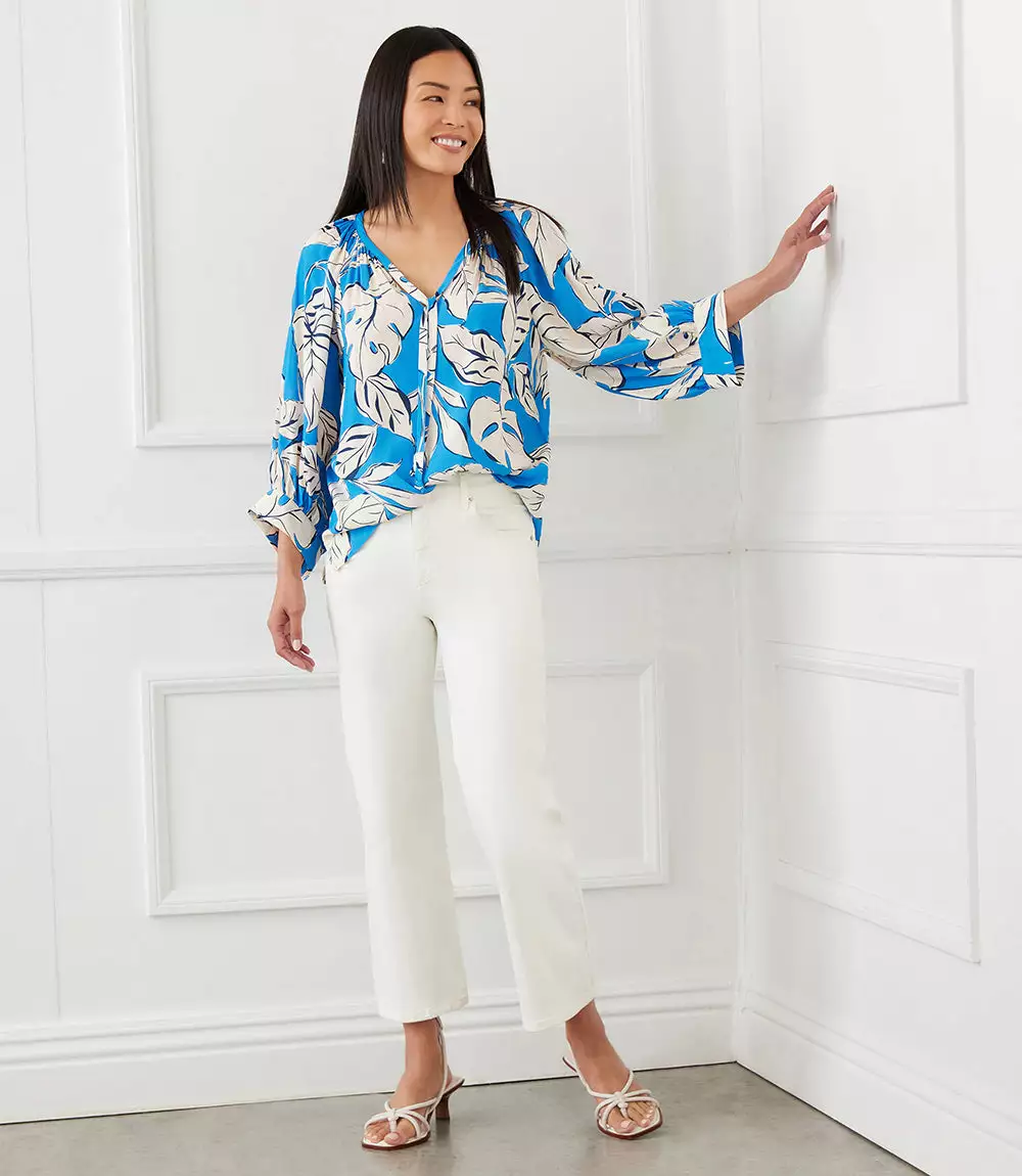 Billowy sleeves and a relaxed fit give this top its chic, laid-back, sensibility. We love pairing this airy blouse with high-rise jeans for a polished look.