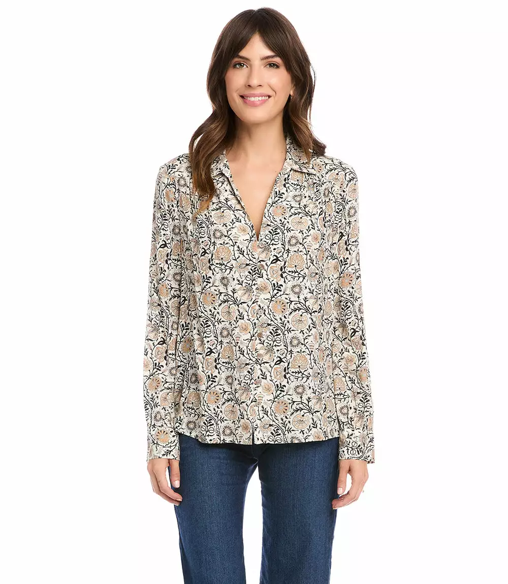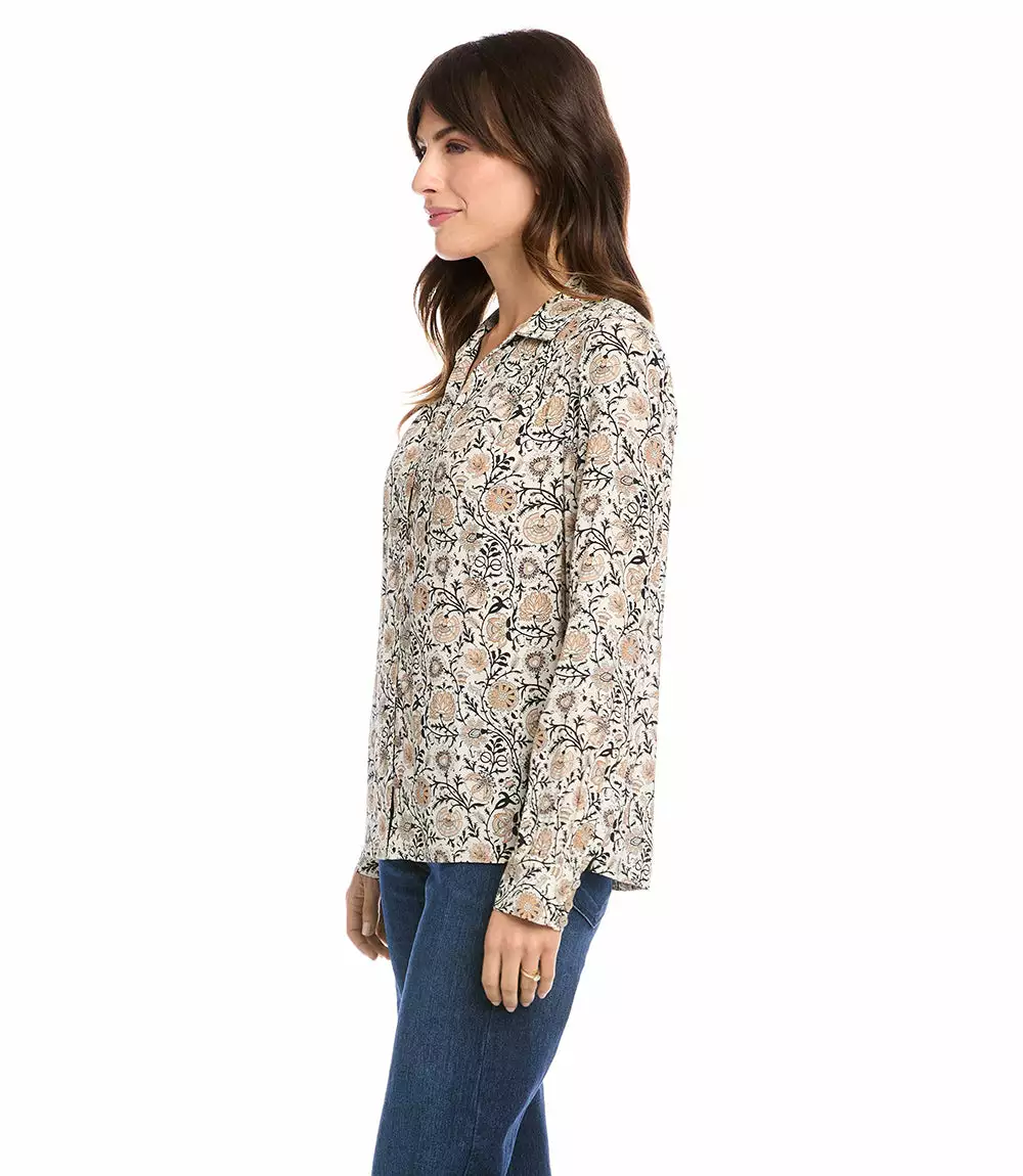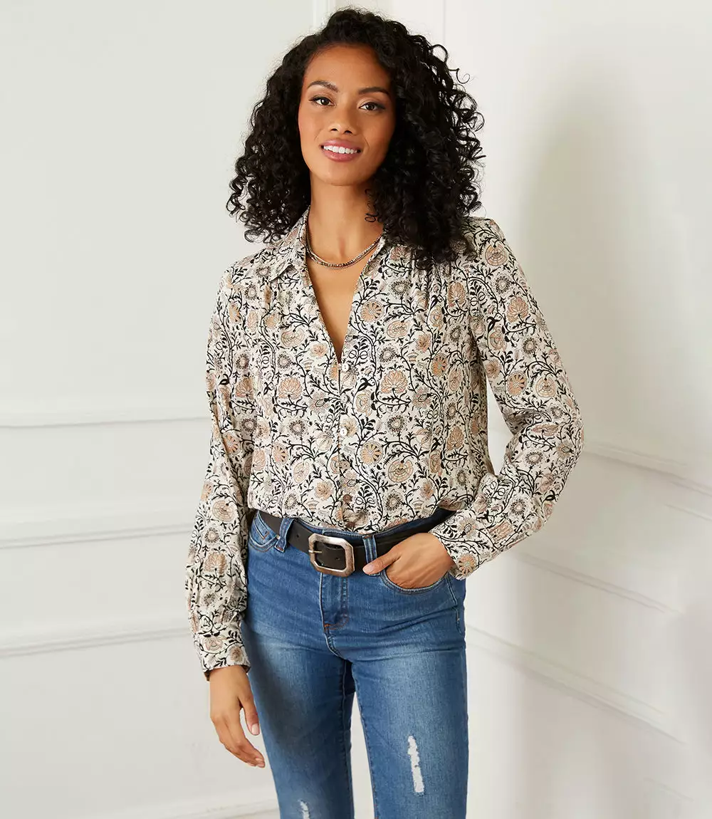 This button-up shirt is both casual and polished with a vintage-inspired floral print and a relaxed fit.