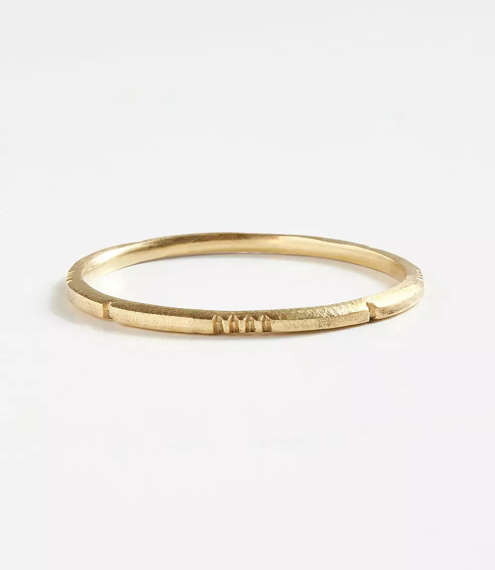 A hand-casted solid brass cuff in a carved pattern with brushed accents. Handmade by skilled artisans in Kenya with raw materials that were up cycled and locally sourced. A portion of every purchase goes directly to support sustainable community development projects in Kenya.