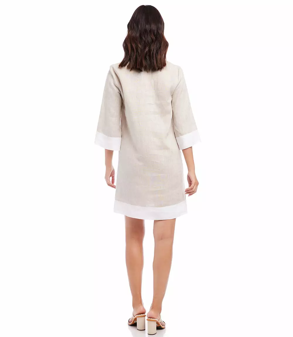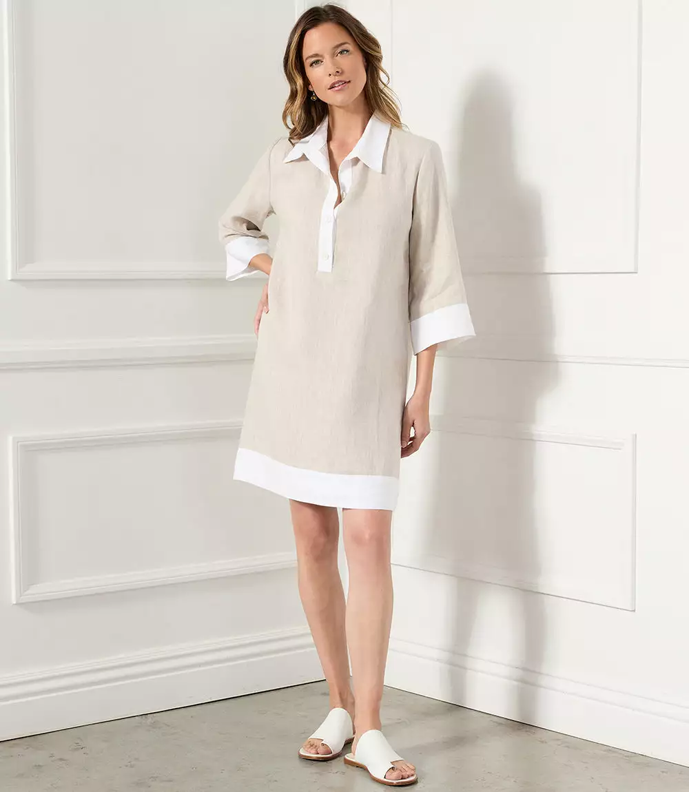 Elevate your warm weather wardrobe with this easy linen dress detailed with colorblock panels that deliver easy elegance. Linen is both cool in warm weather and warm in cool weather. It is strong, naturally moth resistant, and made from flax plant fibers, making it naturally long-lasting and sustainable.