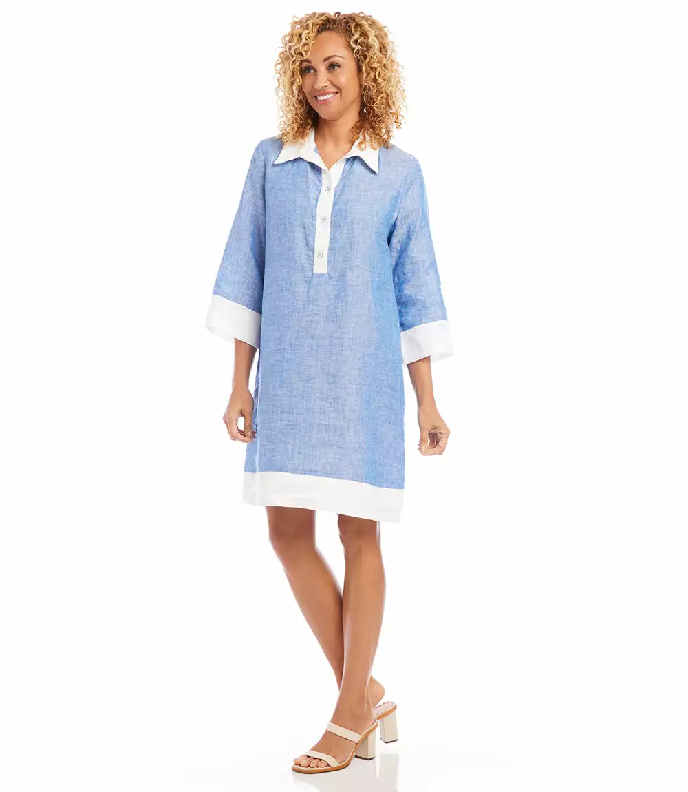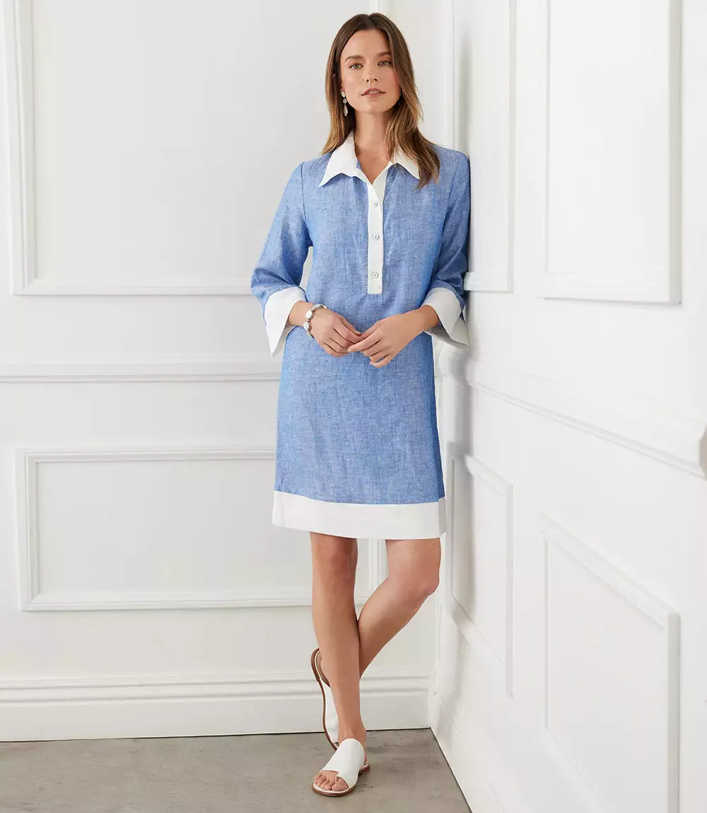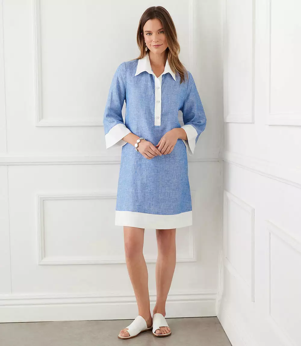 This collared dress is perfect for easy, understated style. With lightweight linen and contrasting placket, sleeve, and hem detailing, it’s the perfect option for any warm day.