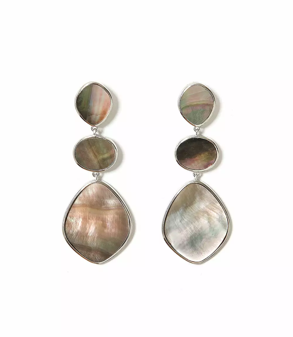 Make a statement with these elegant tier drop earrings in shimmering mother of pearl, set in sterling silver. Each piece is handcrafted to bring out the natural artistry of its particular stone.