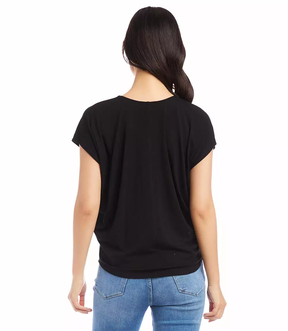 This classic jersey-knit top framed with extended sleeves is a versatile pairing choice that can easily transition from desk to dinner with a simple switch of shoes and accessories.