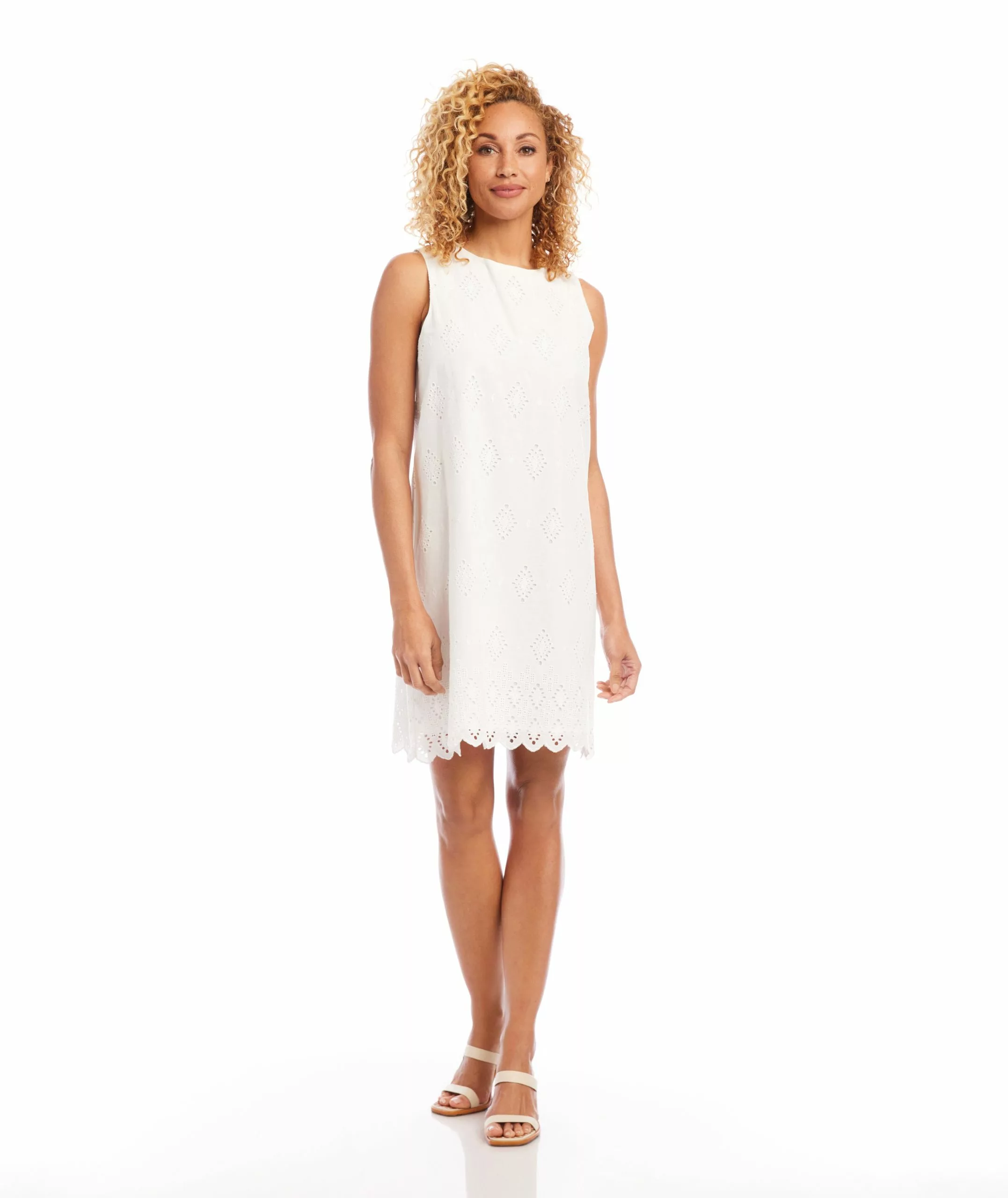 Breezy cotton is decorated with embroidered eyelet diamonds and a beautifully scalloped hemline.