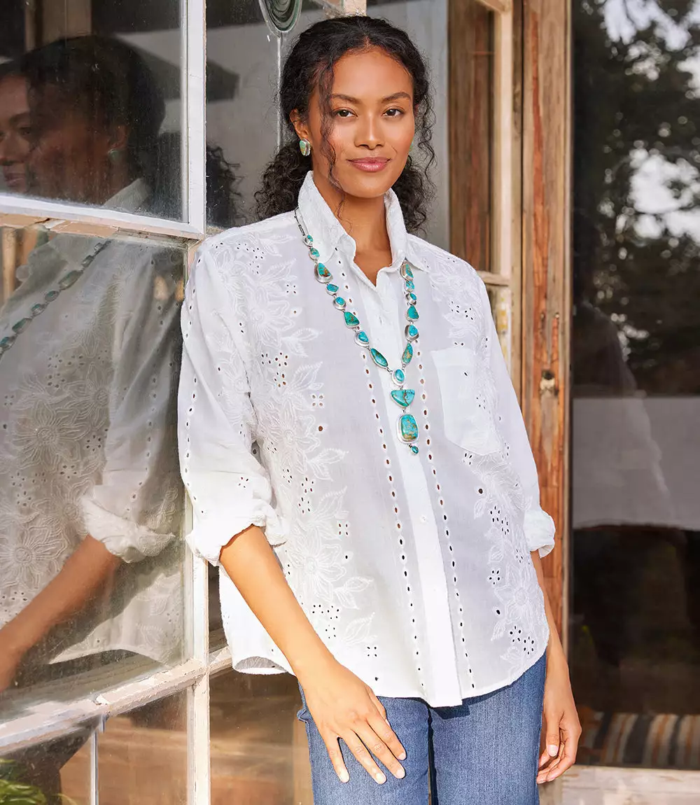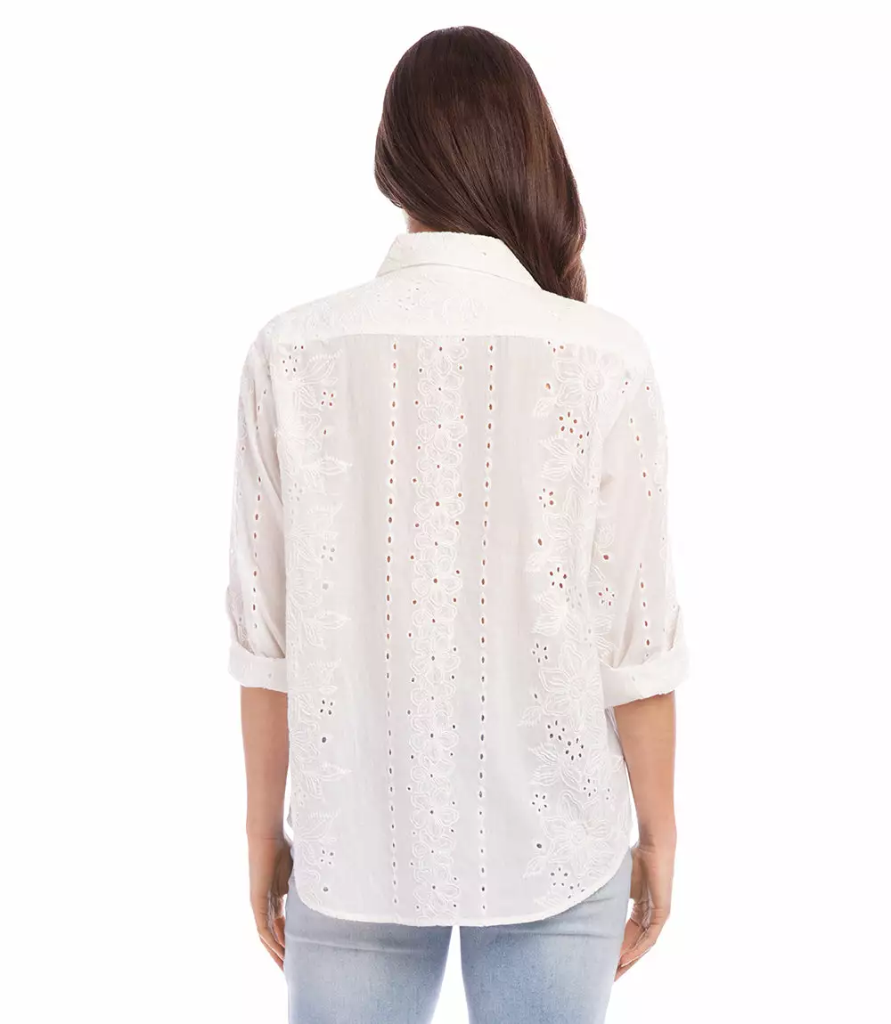 A beautiful top, detailed with eyelets and floral embroidery.
