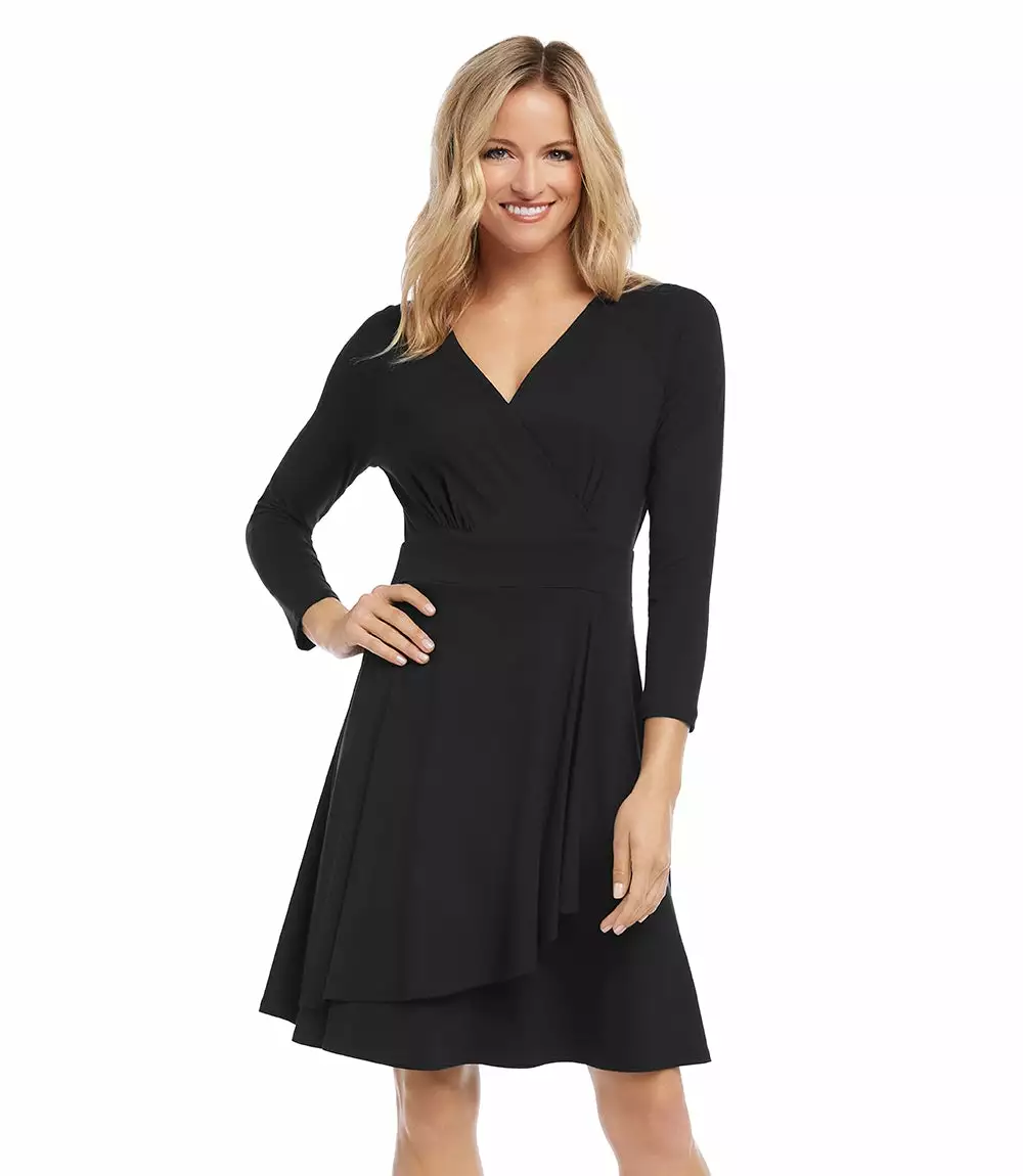Elegant and alluring, this evening-ready dress is cut from fluid jersey-knit fabric and detailed with graceful draping.