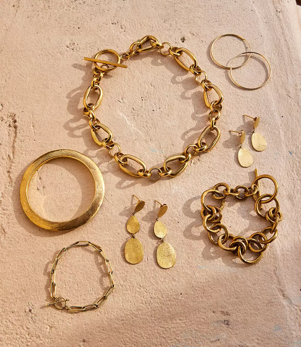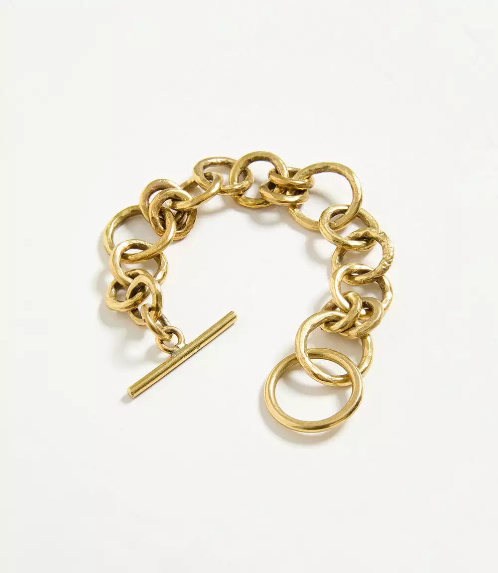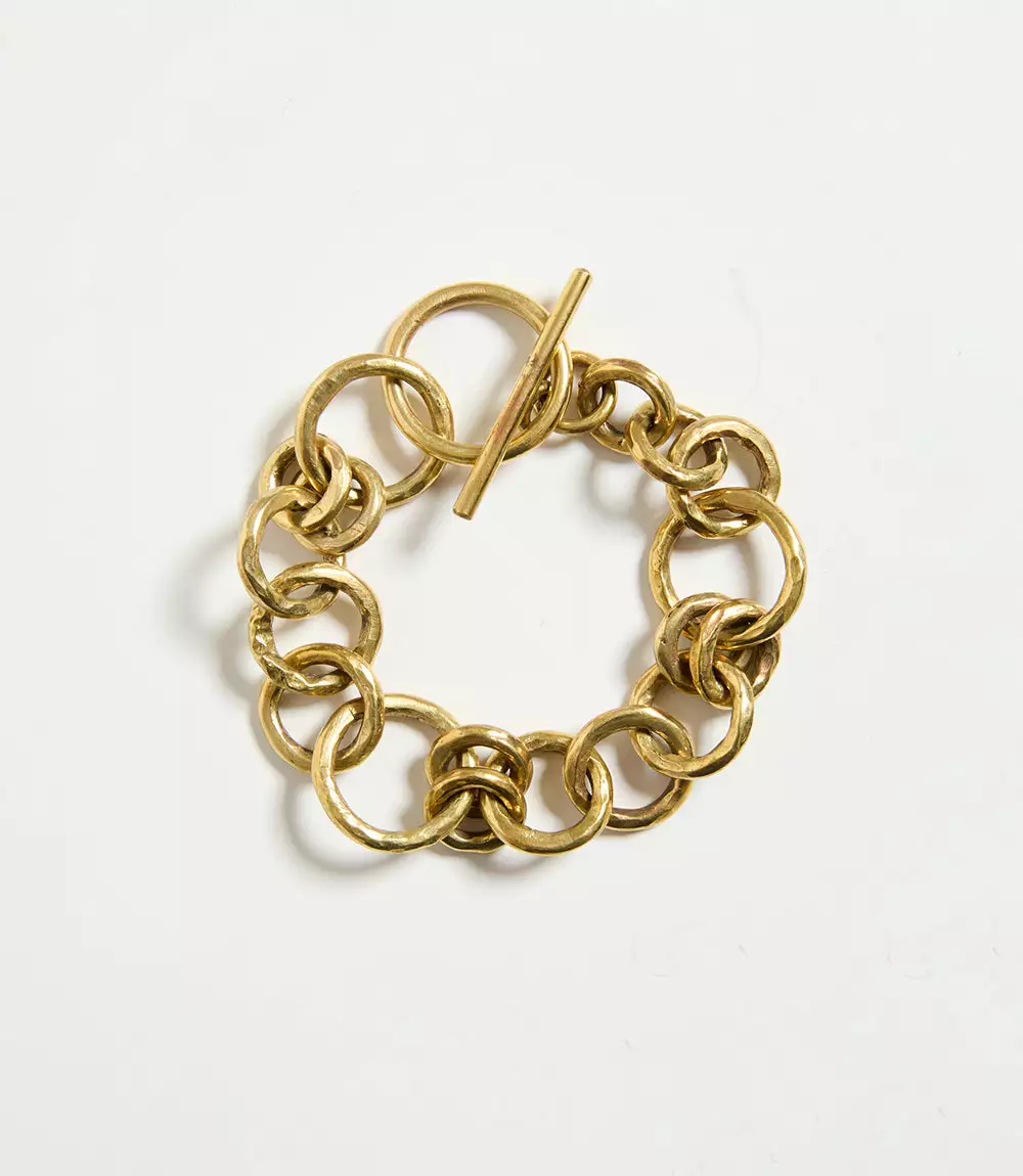 Fair Trade Certifiedâ„¢. An interlocking gold-plated brass bracelet with a lobster clasp that is handmade by Kenyan artisans with locally sourced raw materials. A portion of every purchase goes directly to support sustainable community development projects in Africa.