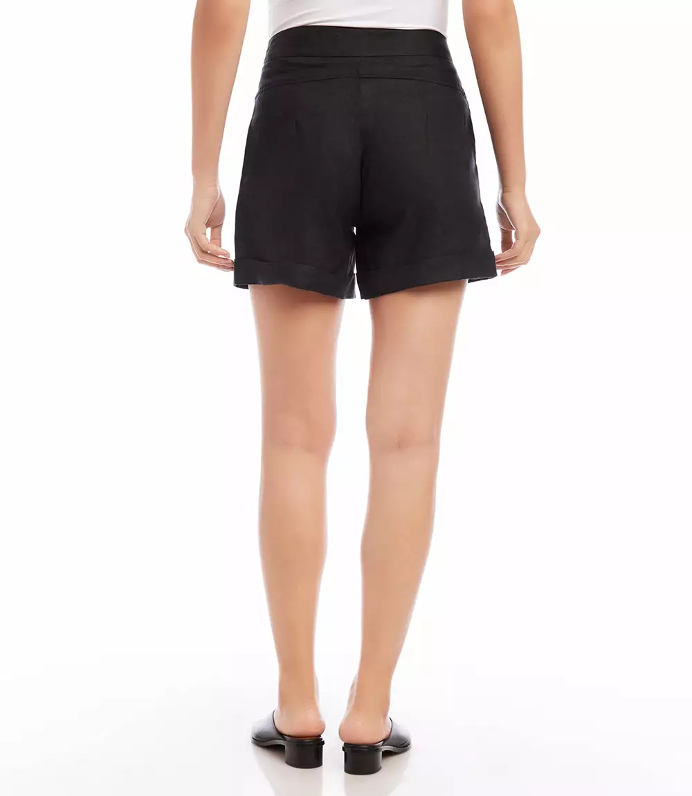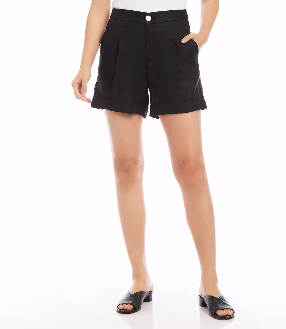 Cool and crisp linen shape these tailored shorts detailed with a slimming high-waist and polished front pleats. Slant pockets add instant functionality.
