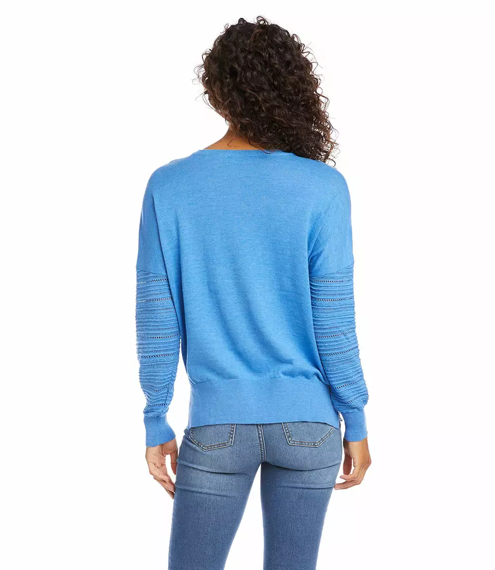 Richly textured yarns create this lux jacquard knit pullover featuring mixed-scale stripes.