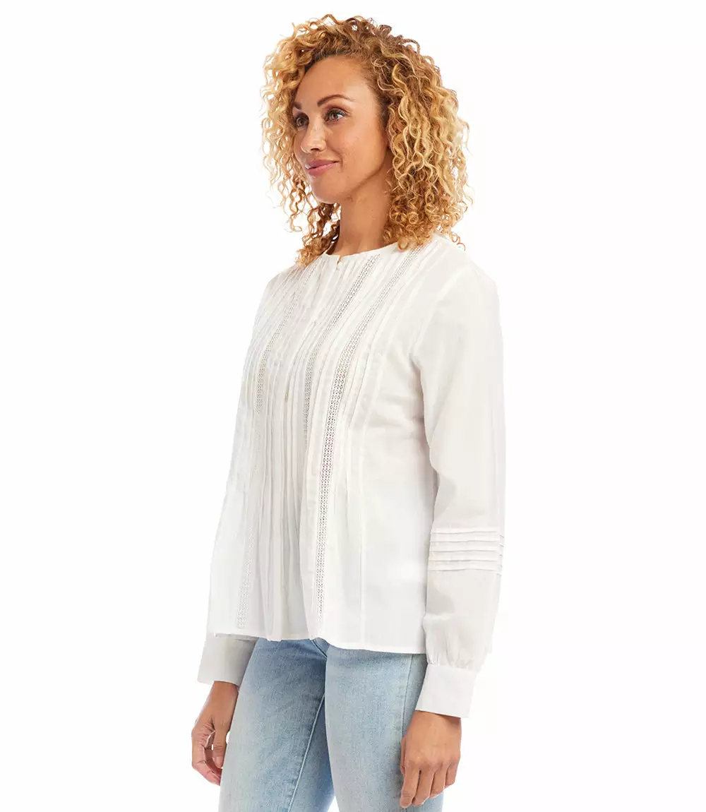 A chic, stylish top detailed with pleating and Bohemian-feeling embroidery
