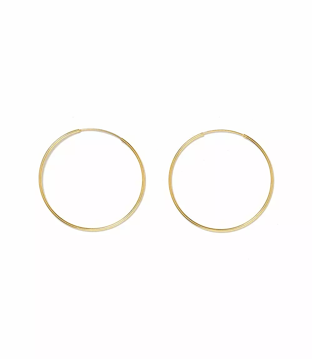 Complete your look with these polished hoop earrings set in 18 karat plated brass, perfectly proportioned for everyday wear.