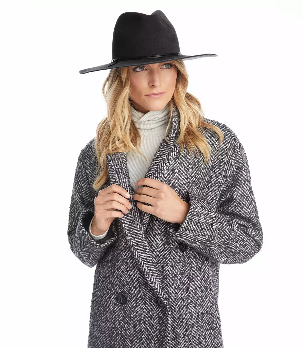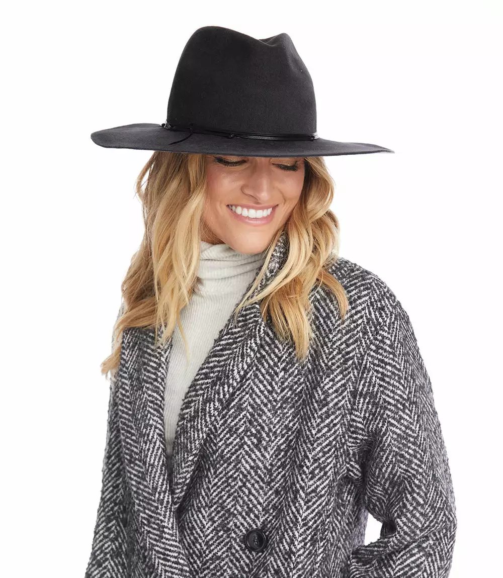 Hand crafted from supple velour felt, this statement-making hat is accented with leather trim for a polished finish. Individually handmade by local workers in New York City.