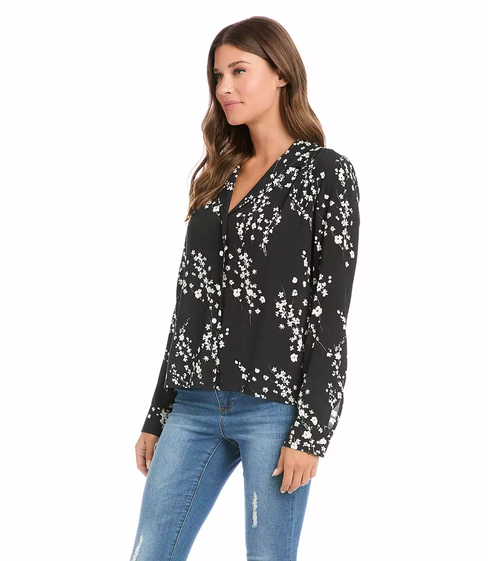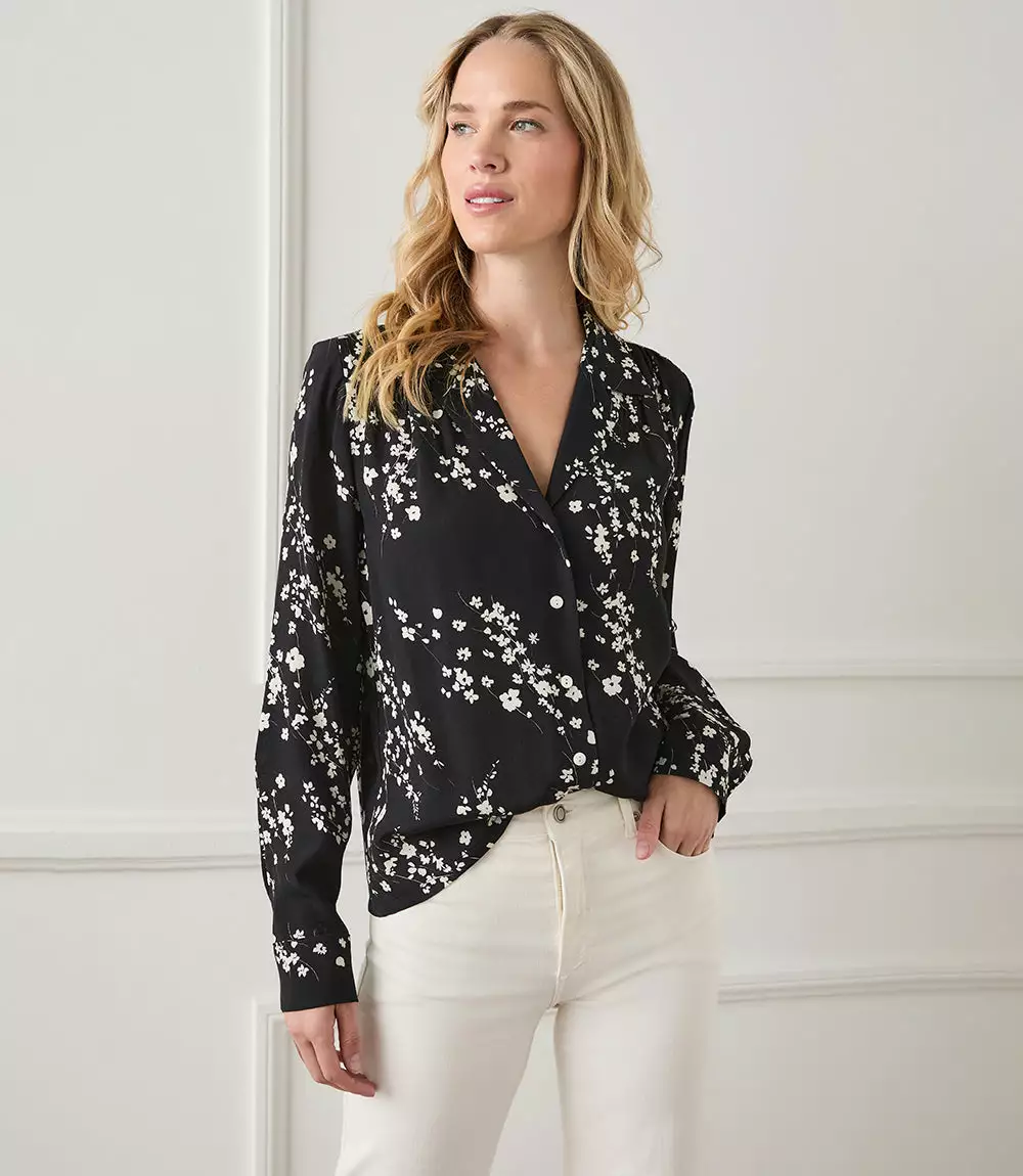 Add a feminine tone to your wardrobe with this button-up floral shirt. It’s both casual and polished with its subtle floral print and relaxed fit.