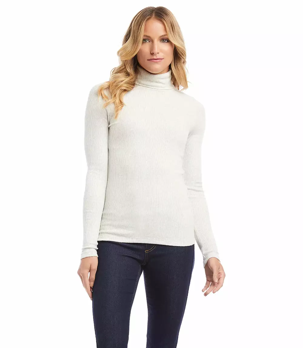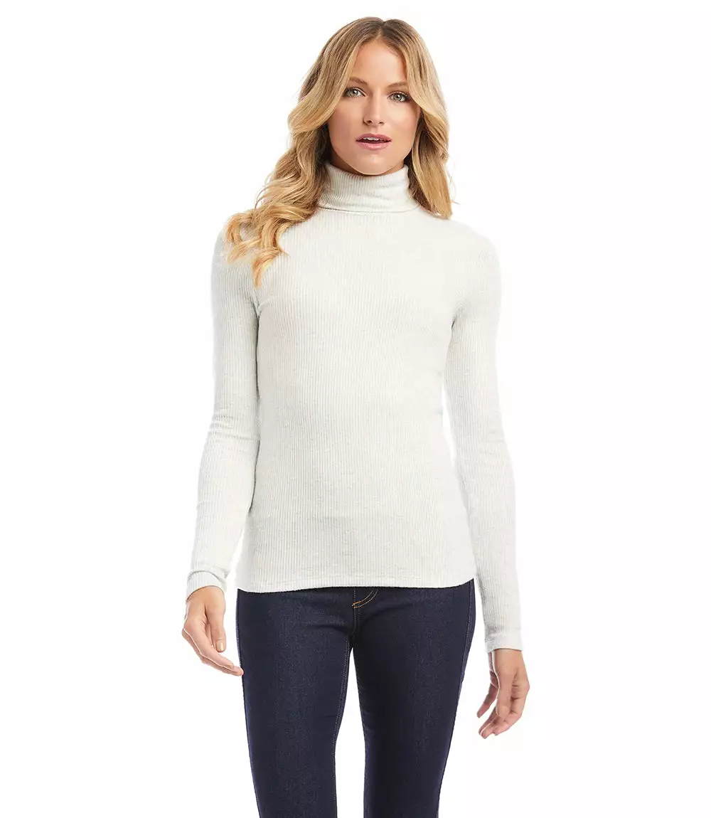 Ultra-soft brushed knit fabric shapes this turtleneck. Its ribbed knit construction and turtle neck makes this top perfect for cold-weather layering.