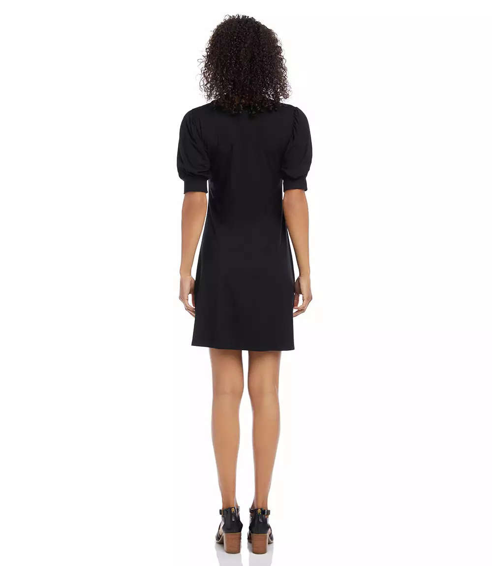 With statement-making puff sleeves, this swingy jersey knit dress offers easy elegance. This dress can easily transition from desk to dinner with a simple switch of shoes and accessories.