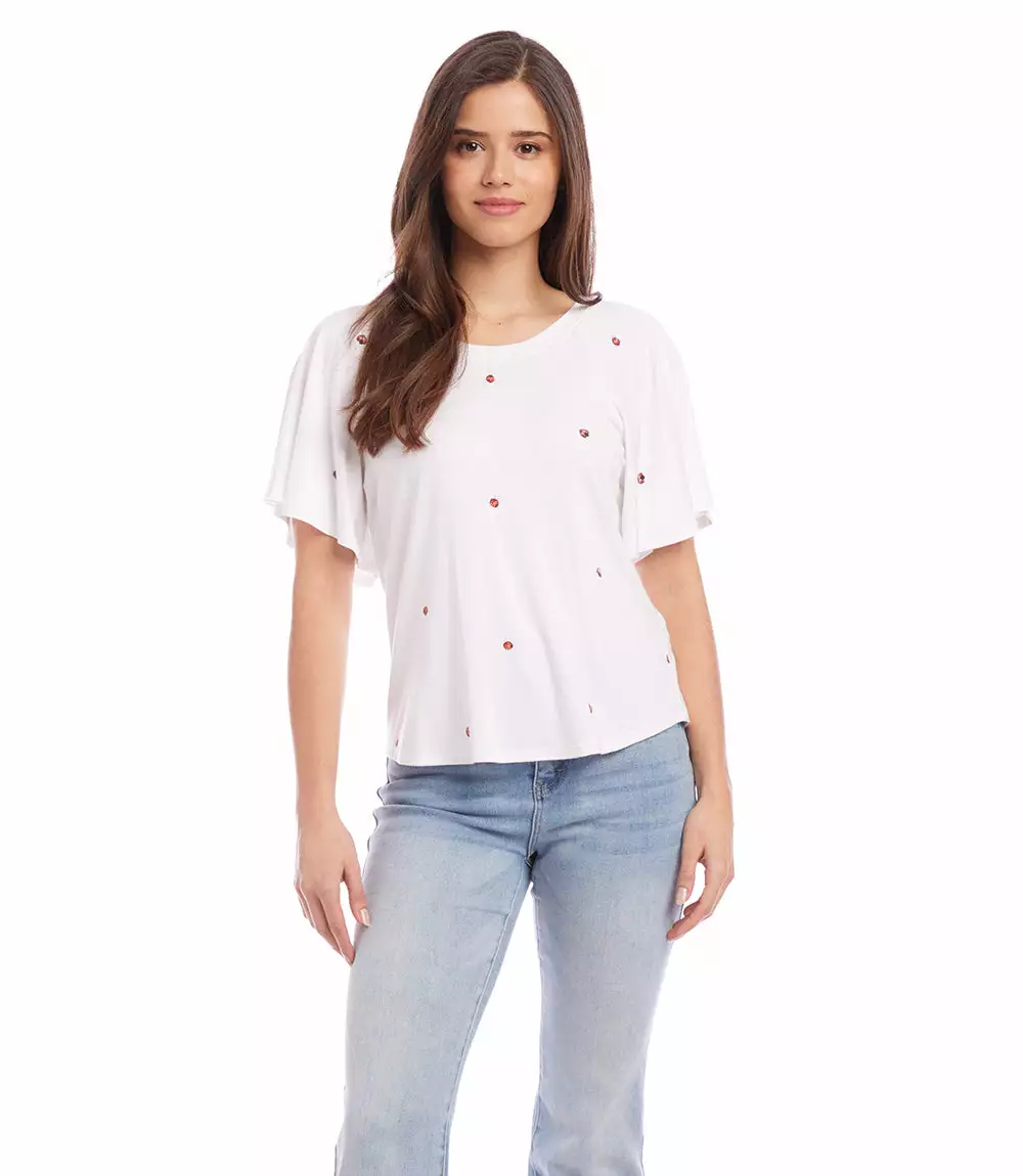 Decadent ruffled sleeves enhance the romance in this top cut from super soft jersey-knit. This top pairs perfectly with your favorite denim.