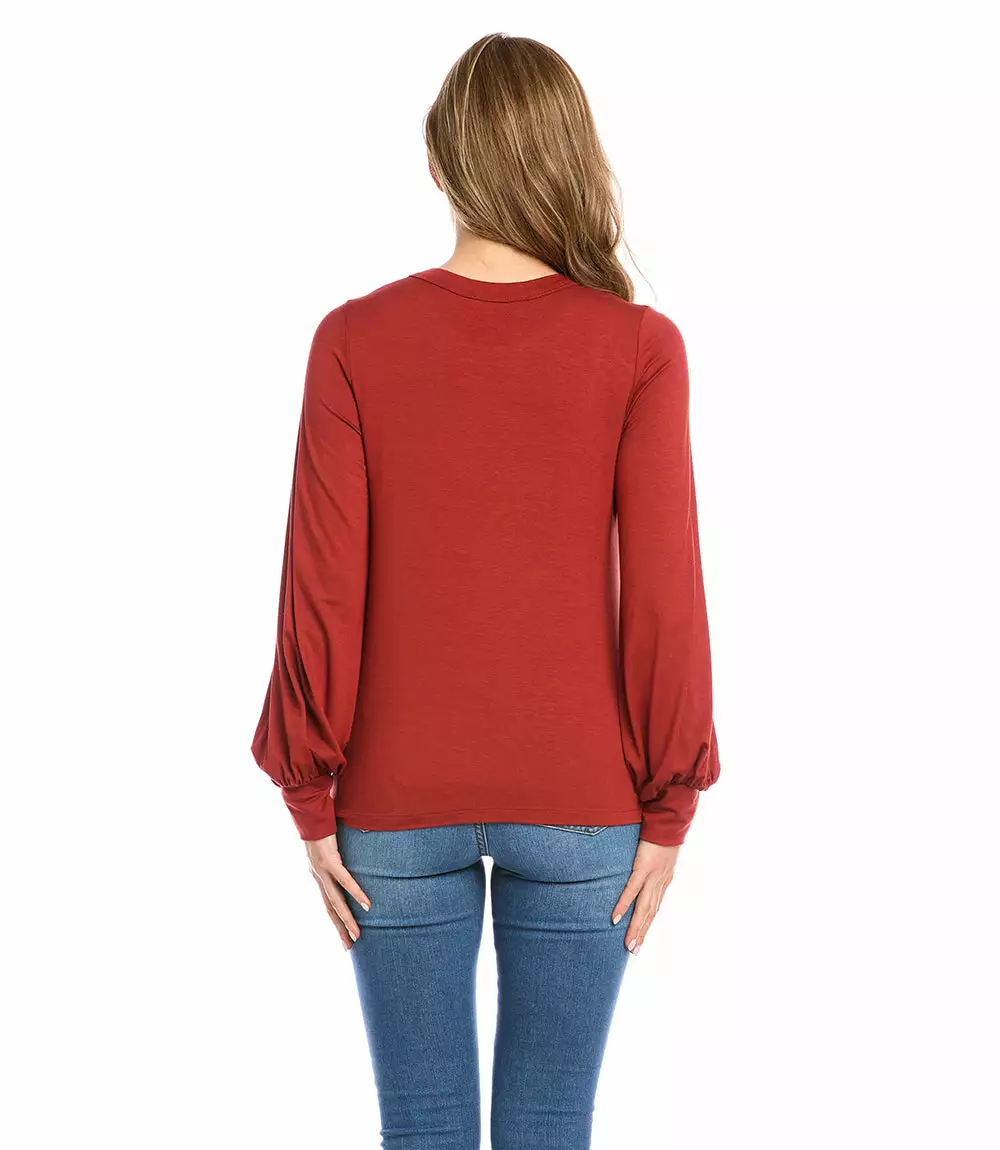 Billowy blouson sleeves add soft movement to this jersey-knit top detailed with a stylish pick-up hem. This top pairs perfectly with high-waisted jeans.