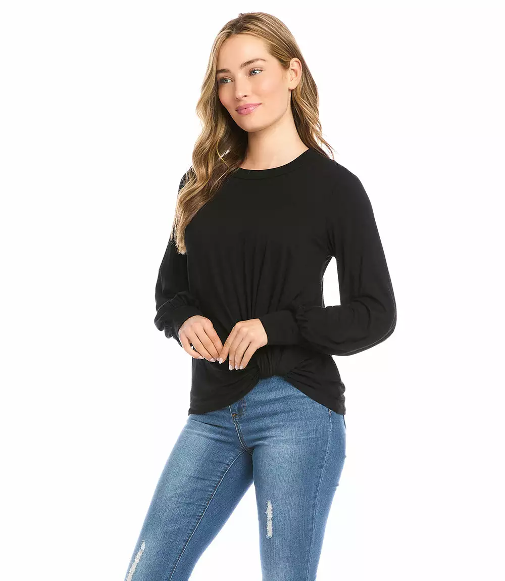 Billowy blouson sleeves add soft movement to this jersey-knit top detailed with a stylish pick-up hem. This top pairs perfectly with high-waisted jeans.