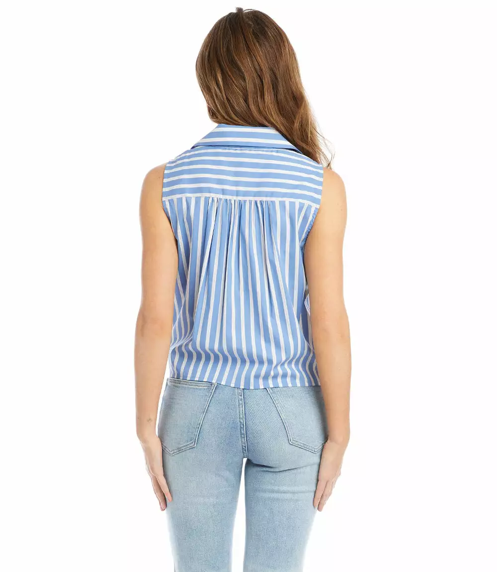 Mixed-scale stripes complete the polished aesthetic of this poplin-style top finished with a stylish tie-front. Pair with matching shorts, jeans, or any white bottom for the perfect weekend outfit.