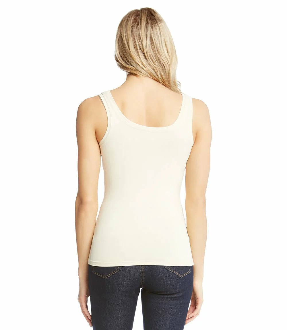 Sophisticated enough for work, yet relaxed enough for weekends, the Karen Kane super soft tank is a classic that can be layered underneath your outfit each and every day. The nylon/spandex blend ensures that this tank will be just as long-lasting as it is comfortable.