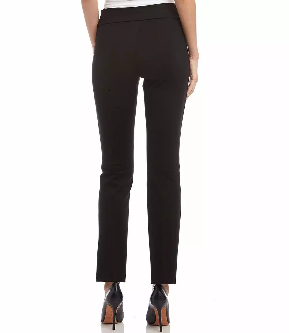 An elastic waistband and stretch-knit construction give all-day comfort to a polished pair of pull-on pants with a straight-leg silhouette.