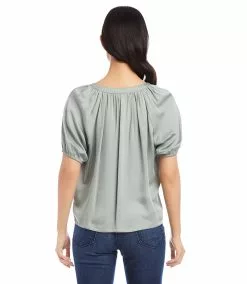 Swishy fringe details the hem of this super soft top cut from jersey-knit. This top can easily transition from desk to dinner with a simple switch of shoes and accessories.