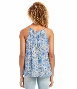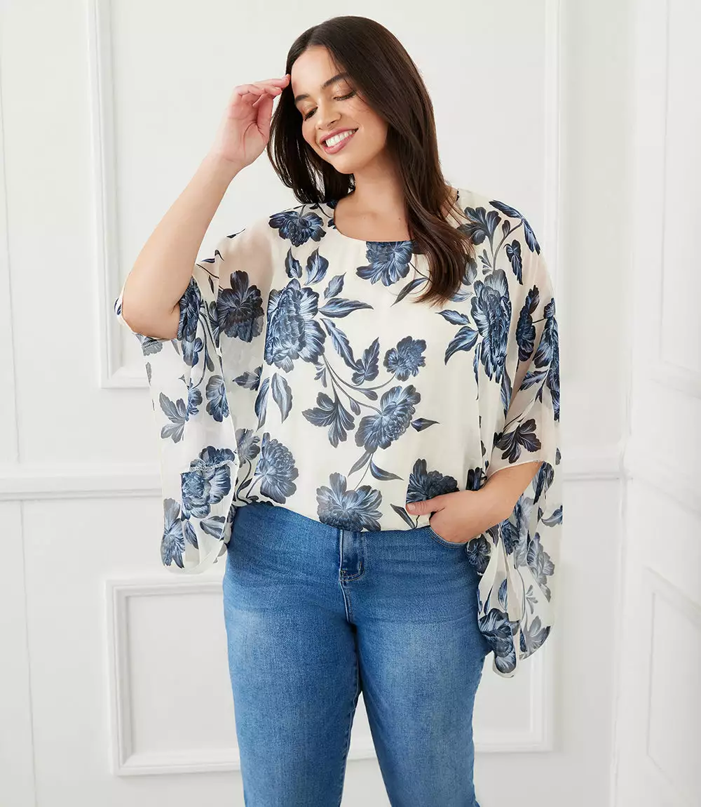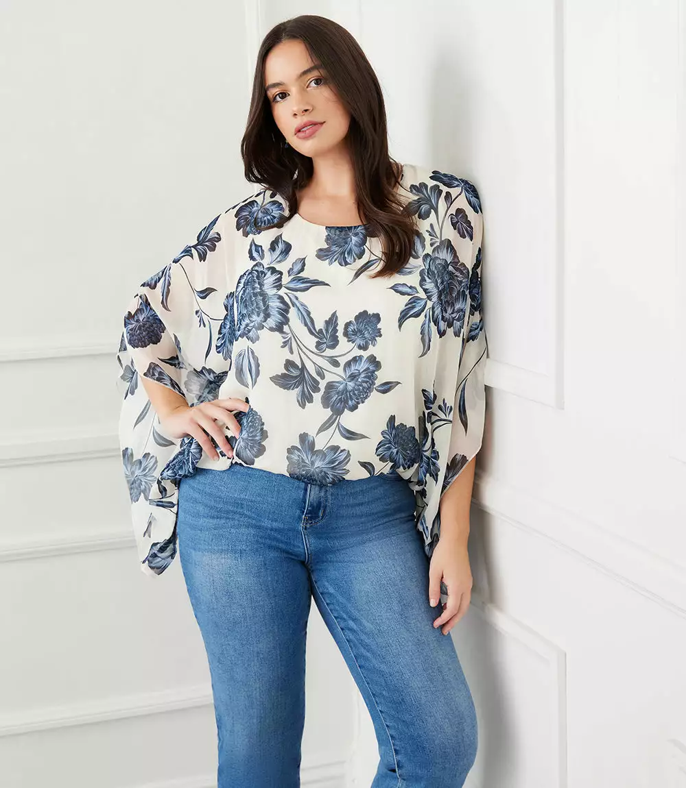 This effortless floral print top features a flattering silhouette with an elastic bottom and built in jersey knit lining.
