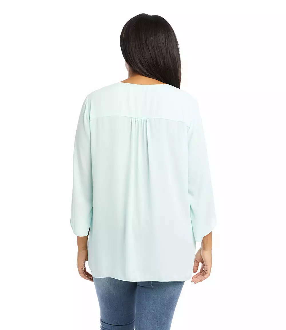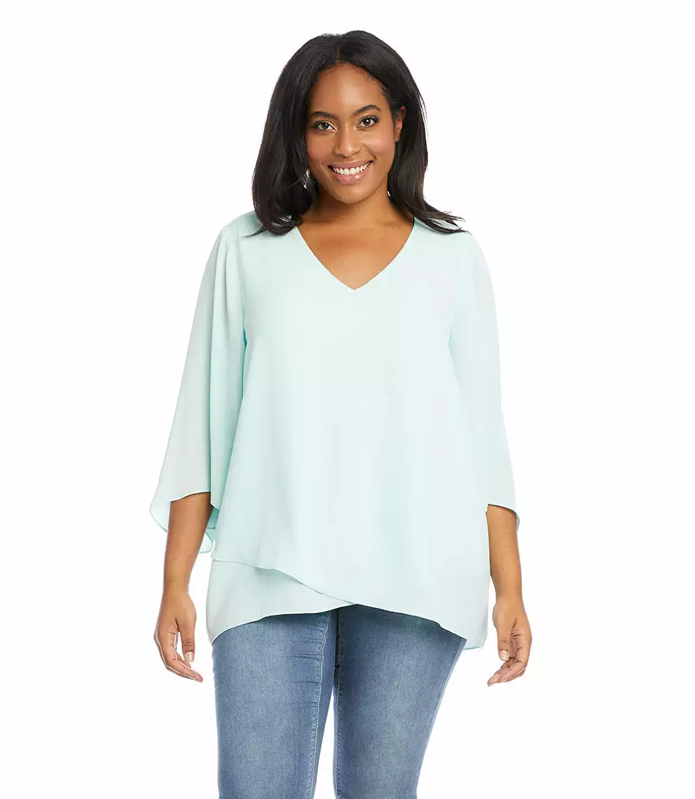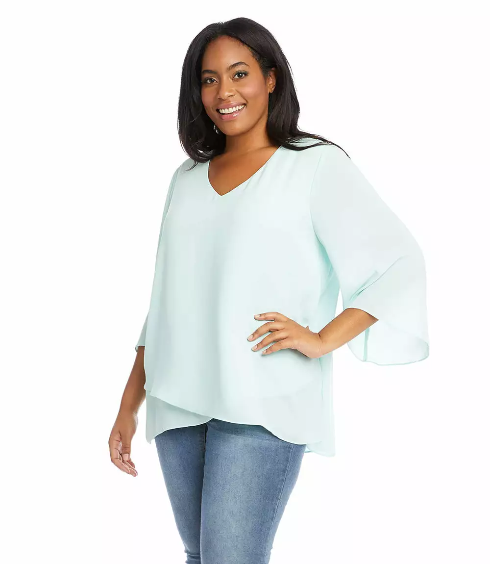 Floaty layers bring soft movement to a silky crepe blouse that can be worn for work or the weekend.