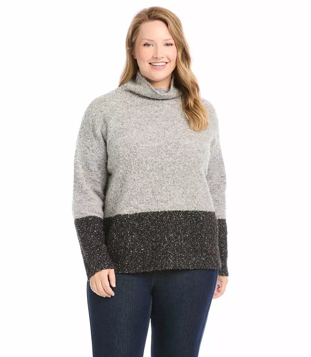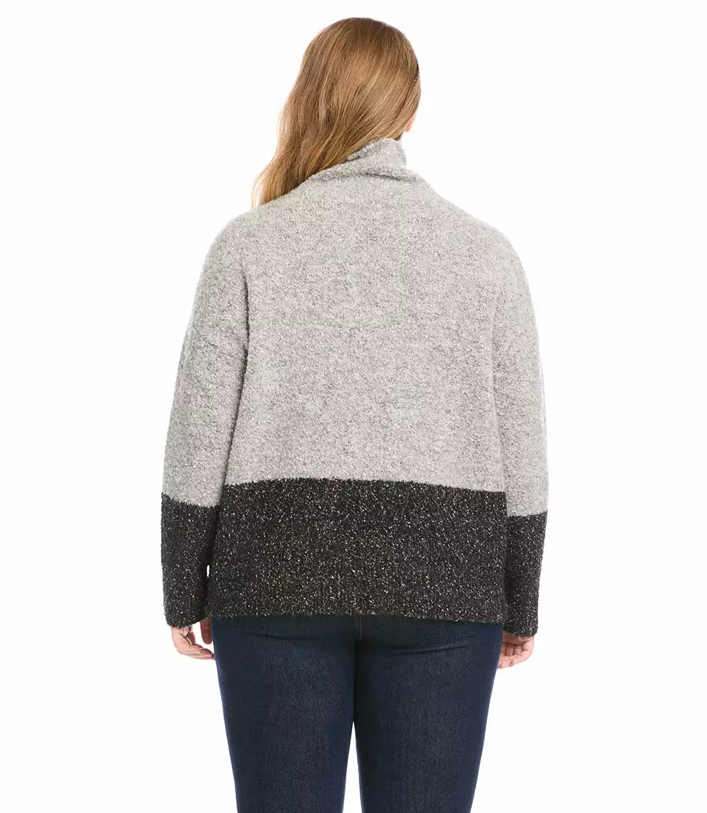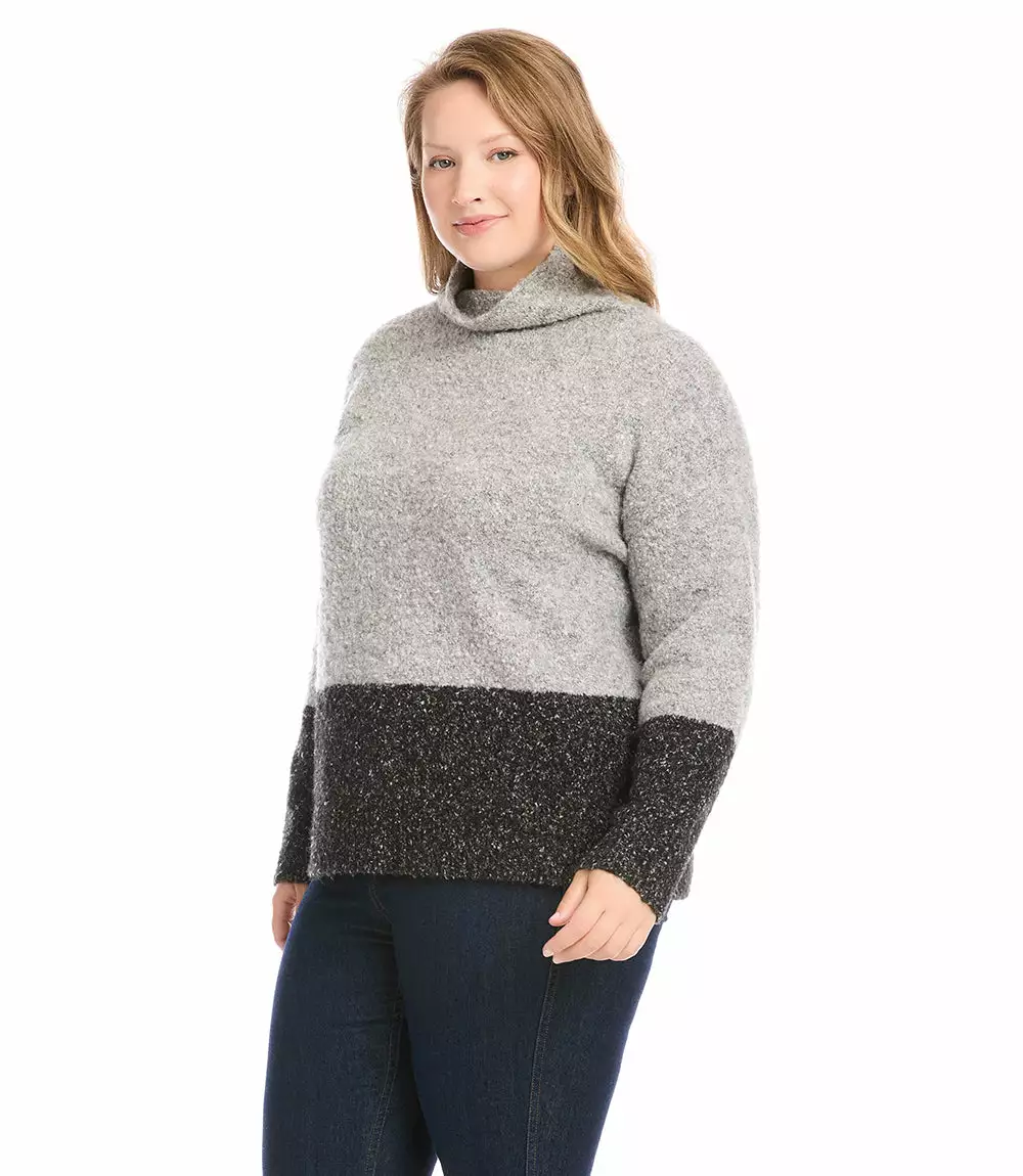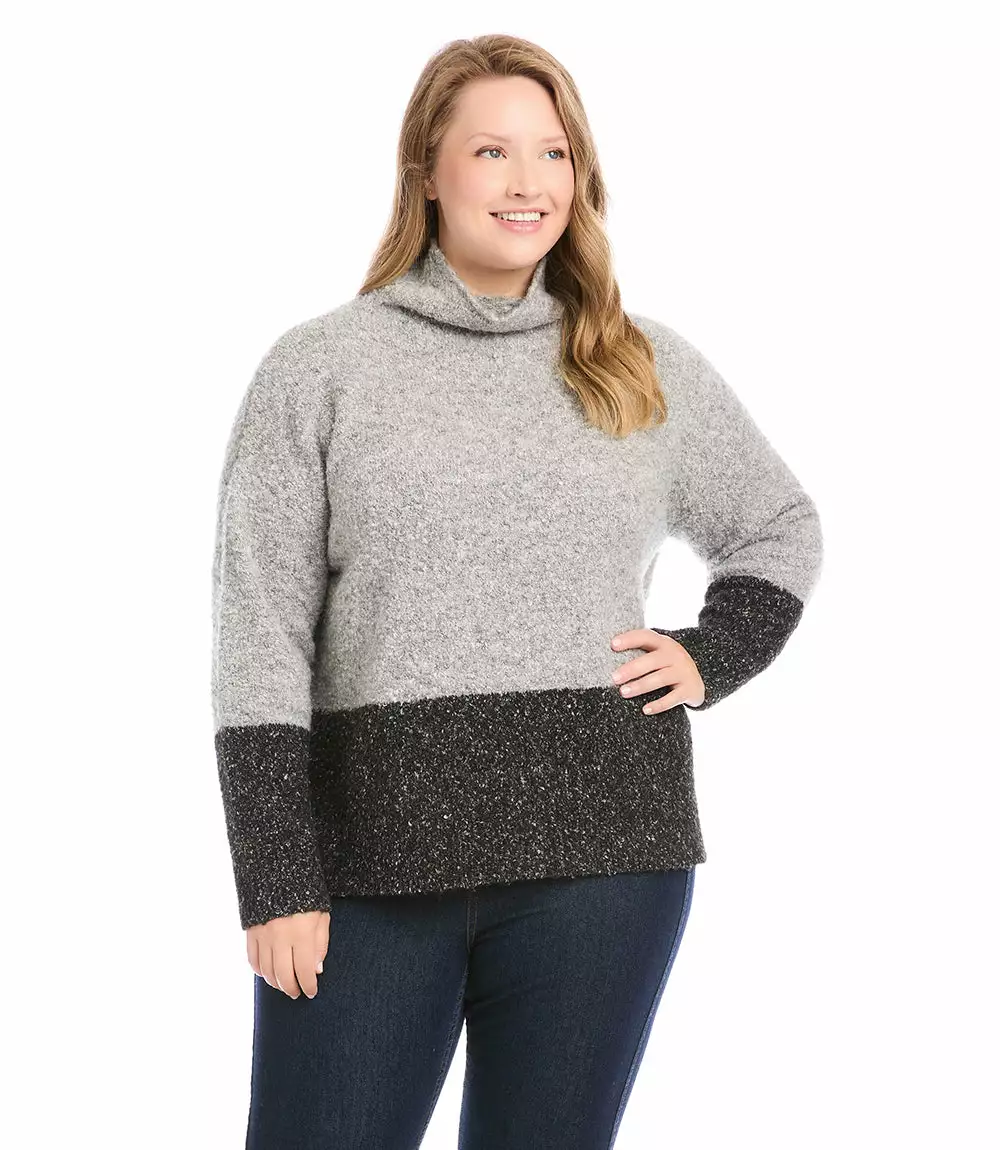 Crafted from super soft plush knit, this colorblock sweater is an instant wardrobe essential with its polished turtleneck and relaxed fit.