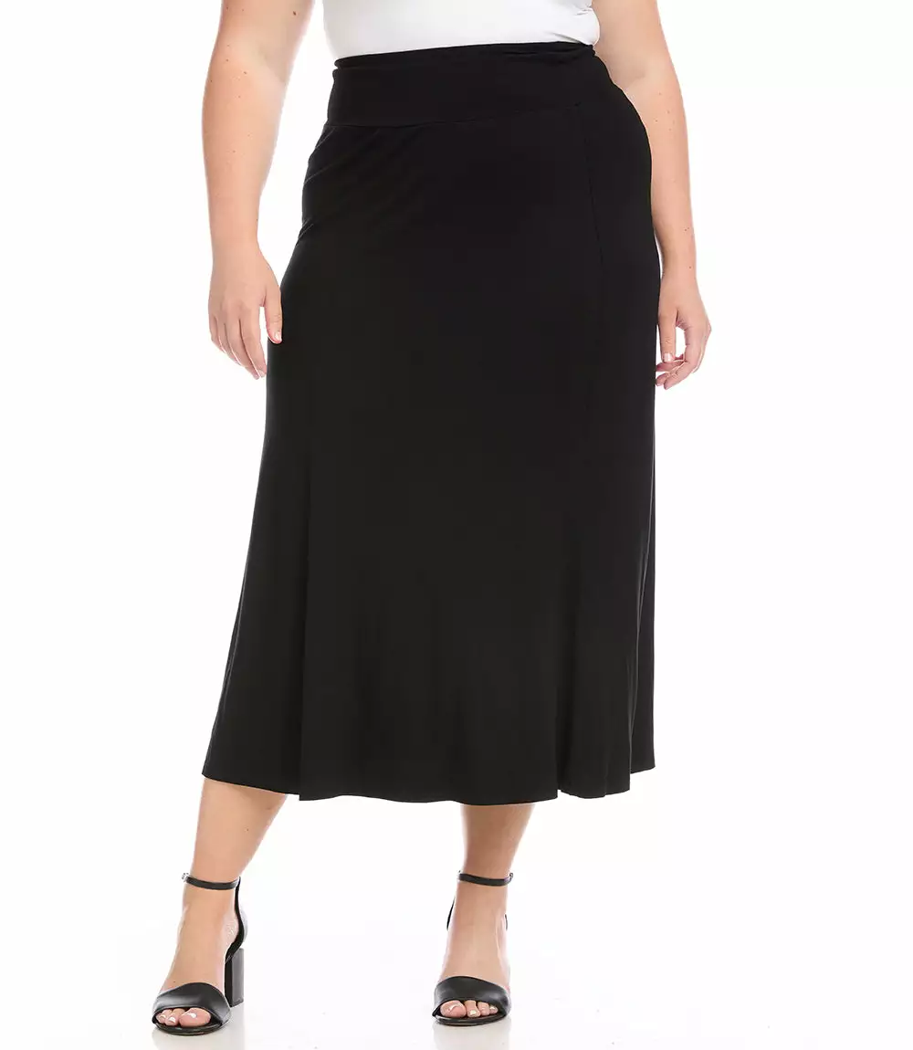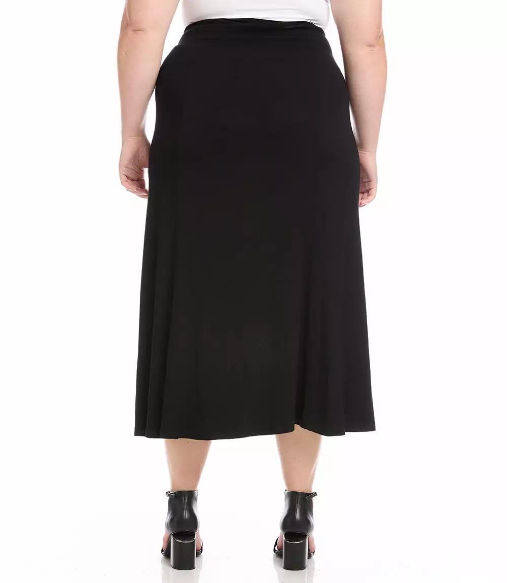 Fluid jersey-knit fabric shapes the smooth free-flowing silhouette of a floor-sweeping maxi skirt.