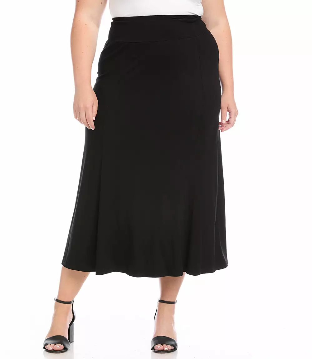 Fluid jersey-knit fabric shapes the smooth free-flowing silhouette of a floor-sweeping maxi skirt.
