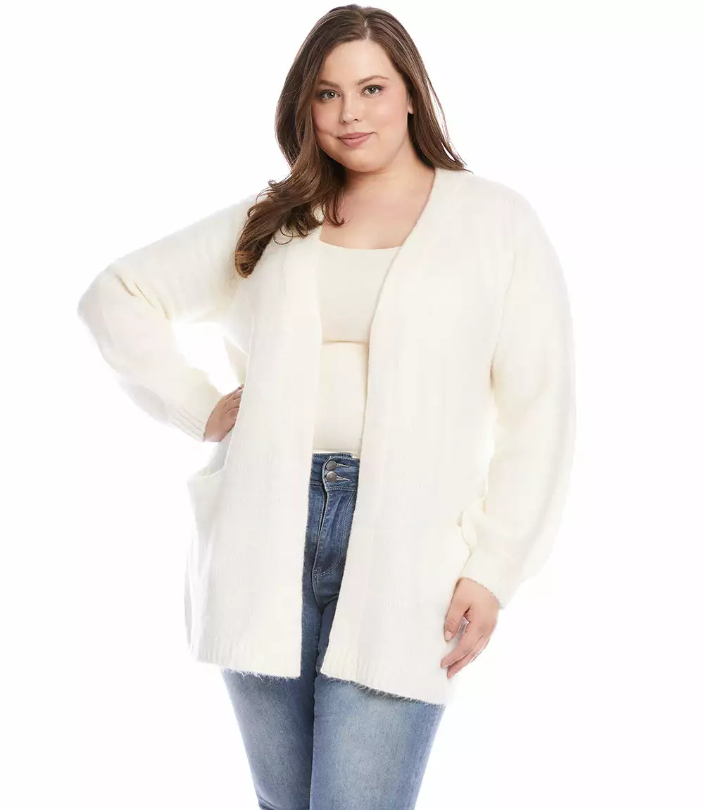 Buttery-soft sweater knit shapes this essential cardigan detailed with statement-making puff sleeves. This cardigan is versatile enough for office hours, brunch and beyond.