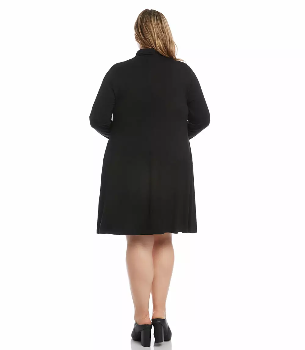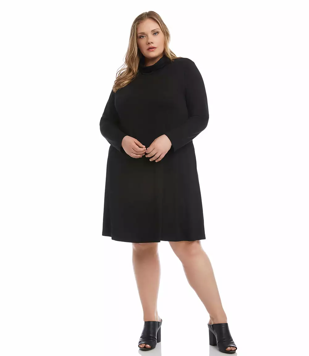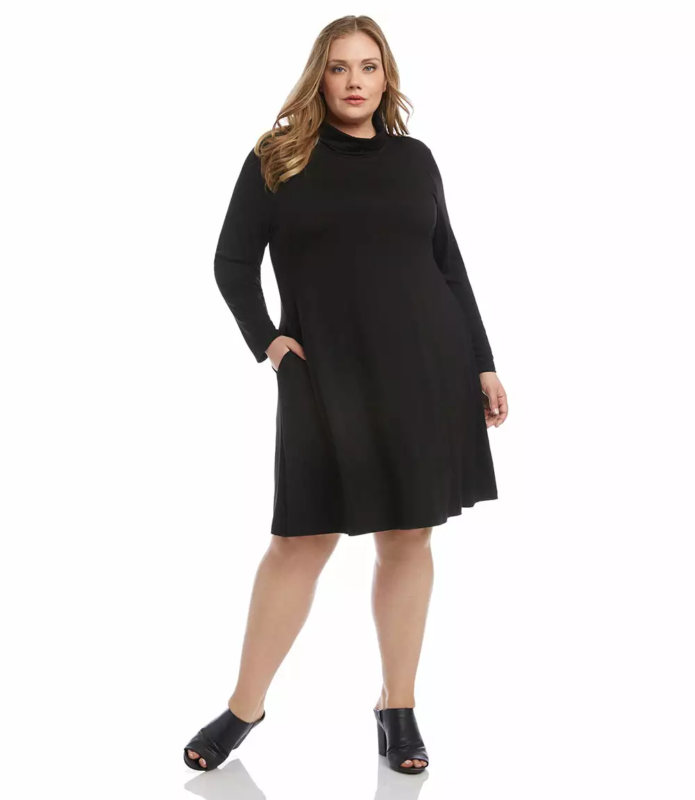 With its soft jersey-knit fabric and versatile a-line silhouette, this long sleeve turtleneck dress is a layering essential for the cooler temperatures ahead. It also features handy side pockets.