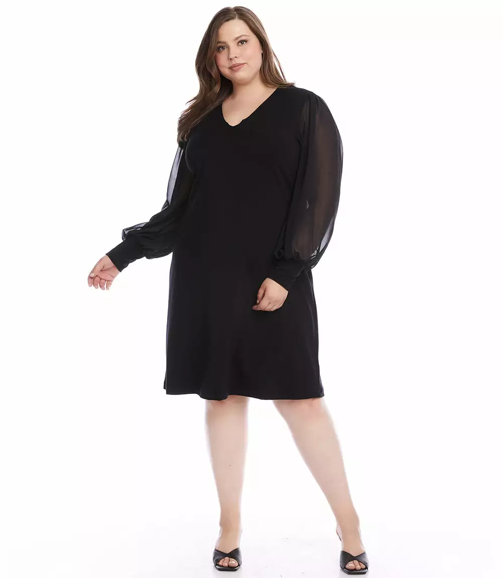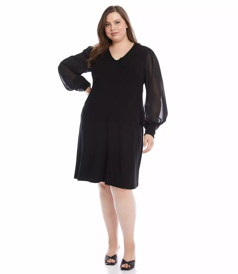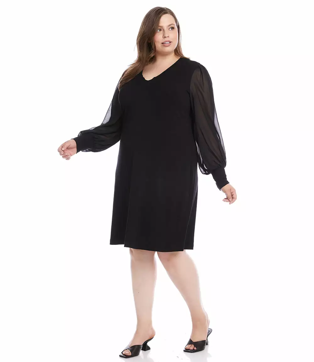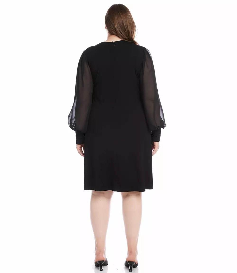 Romantic allure is found in these airy sheer sleeves. This curve-defining dress is cut from soft jersey-knit for a comfortable, evening look.