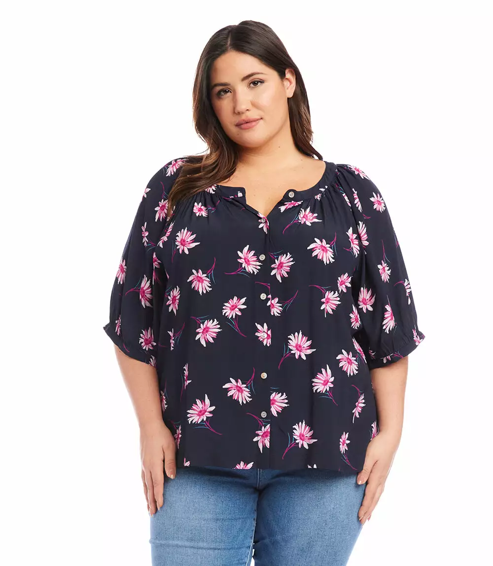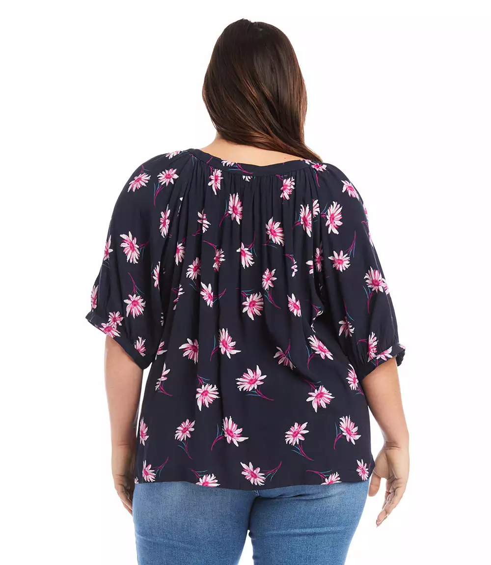 A collage of florals make a dynamic statement on this chic Bohemian top.