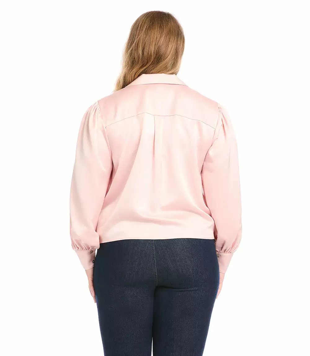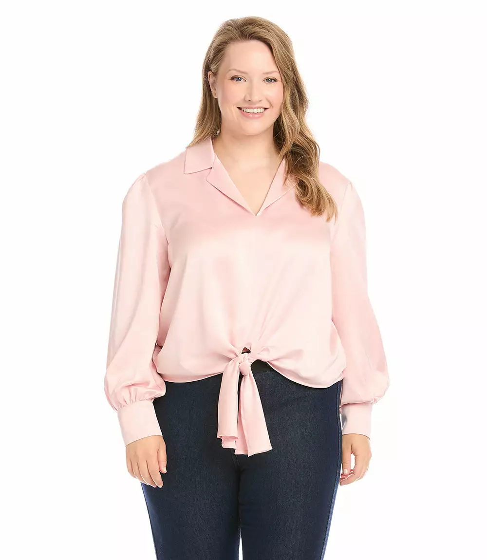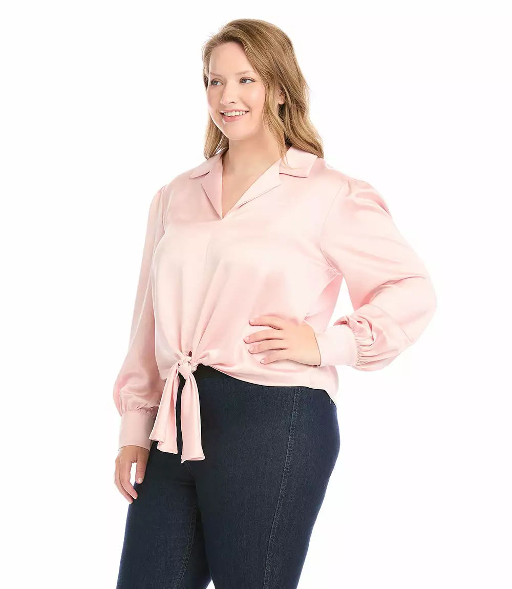 Cut from luxurious vintage heavy satin, this top is detailed with a stylish tie-front and a polished notch collar. This top pairs perfectly with high-waisted jeans.