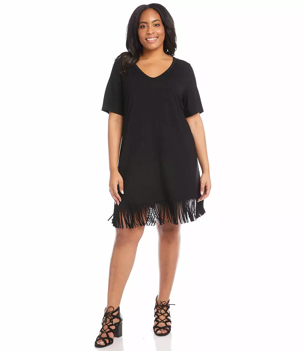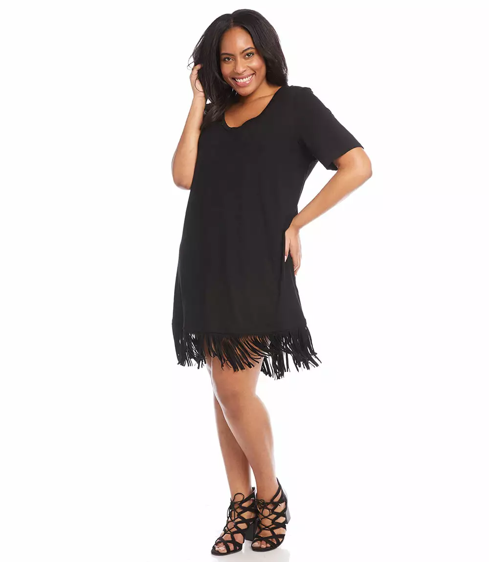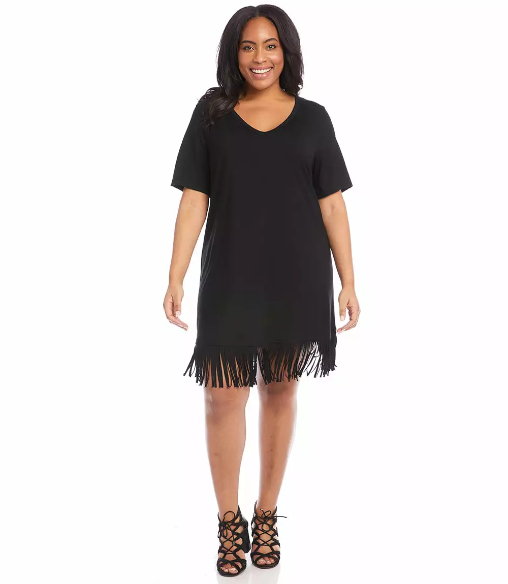 Karen Kane Plus Size V Neck Fringe Dress