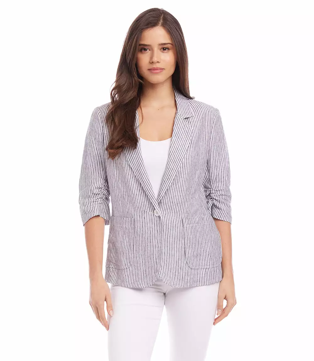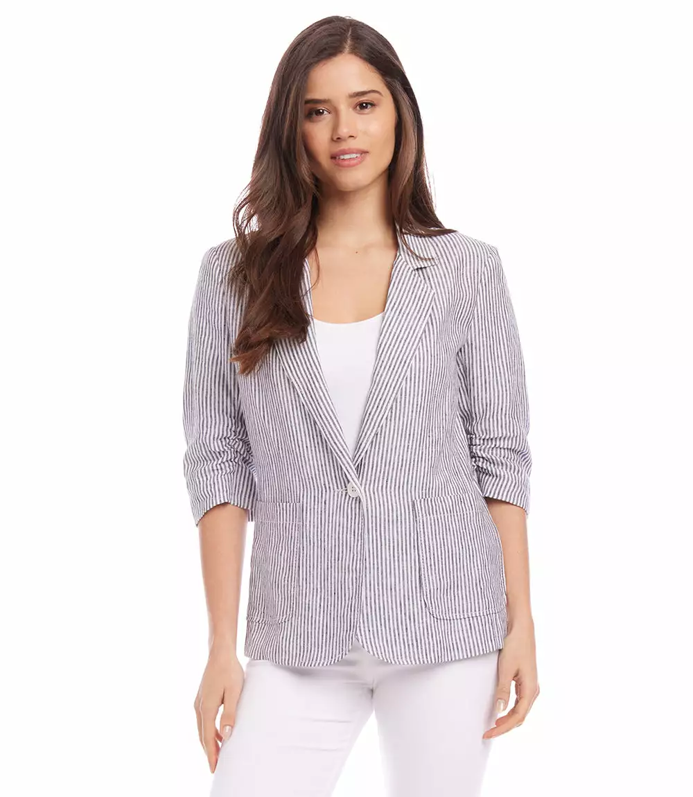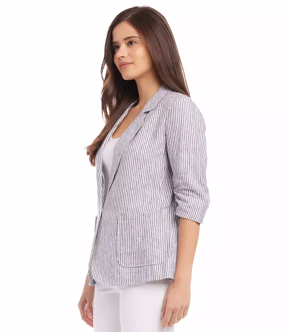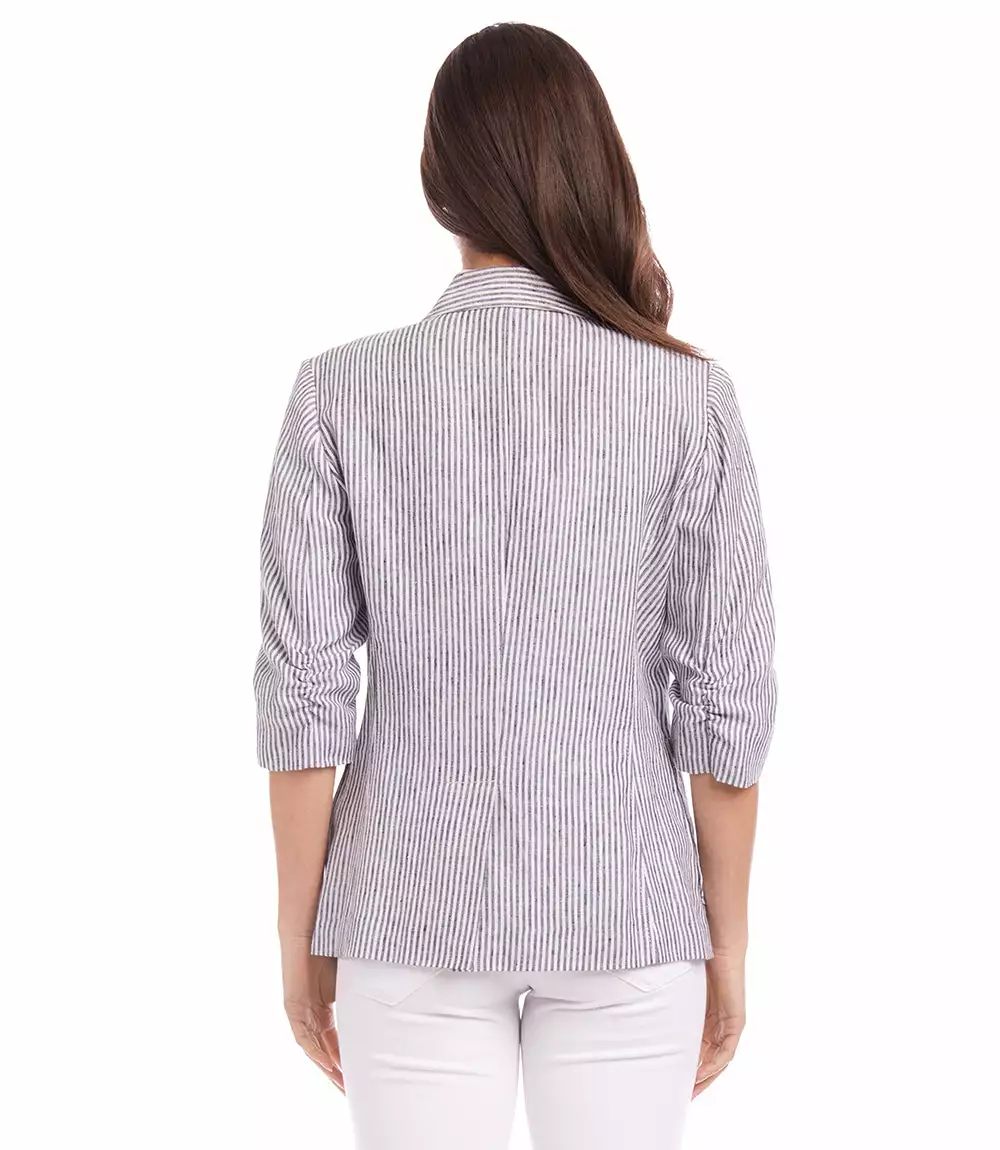 Subtle pinstripes add a touch of sophistication to this refined blazer.