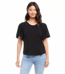 Decadent ruffle sleeves enhance the romance of this top cut from super soft jersey-knit. This top pairs perfectly with your favorite denim.