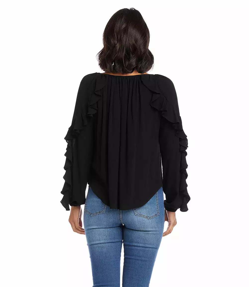 Textured with flouncy ruffles at the sleeve, this breezy gauze top is versatile enough for work hours and evening dinner.