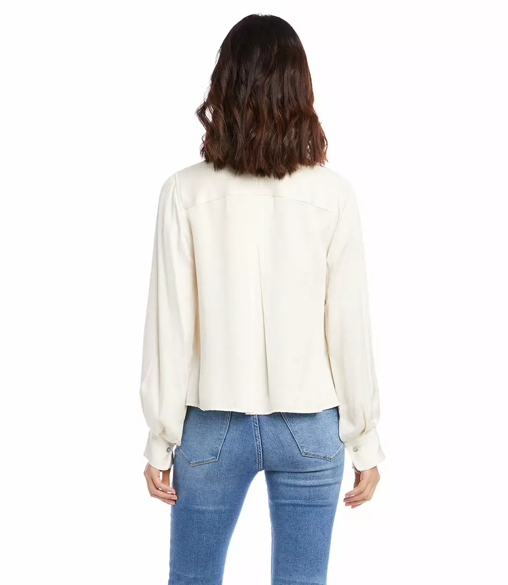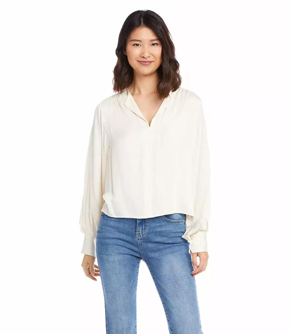 Cut from luxurious silky satin, this top is detailed with billowy blouson sleeves. This top is the perfect choice for office hours, dinner and beyond.