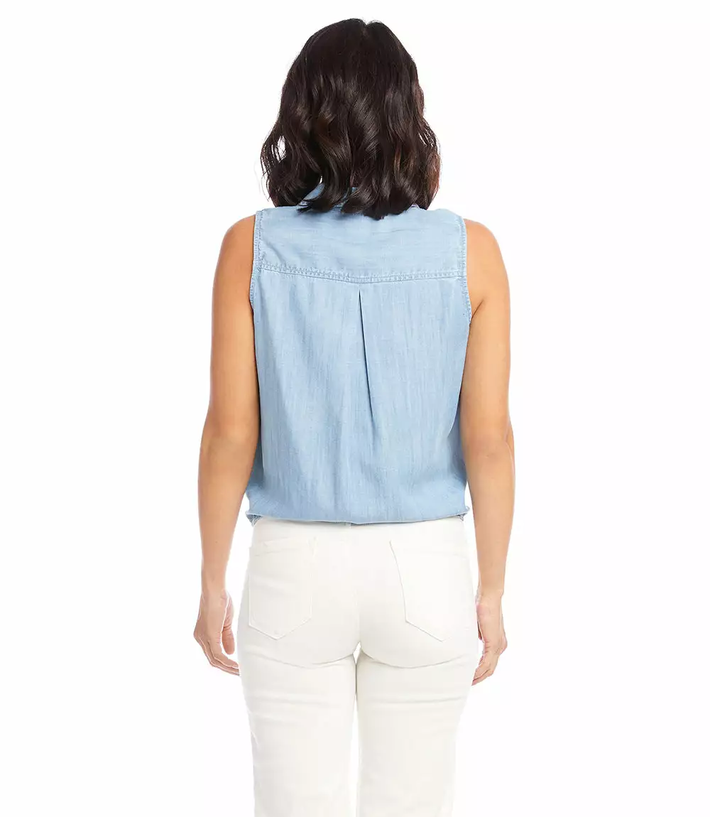 Effortless style and comfort meet in this relaxed chambray top that’s finished with a tie for added shape. Wear it with your favorite pair of white denim for an easy look.