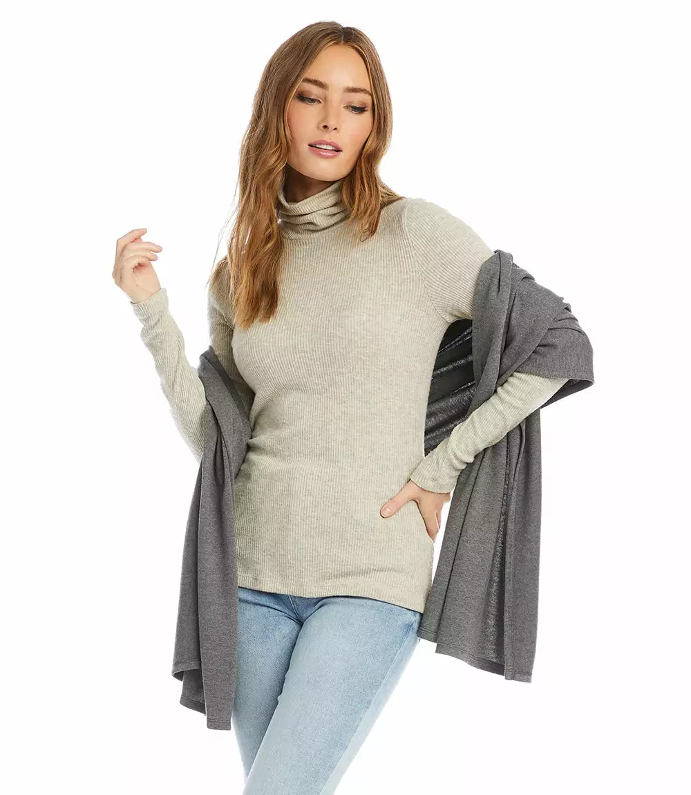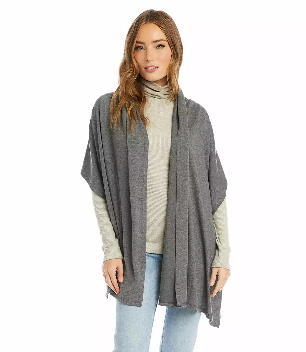 Super-soft sweater knit shapes this wrappable shawl scarf for chilly days. This oversized scarf is versatile enough to be wrapped around your neck or draped over your shoulders.